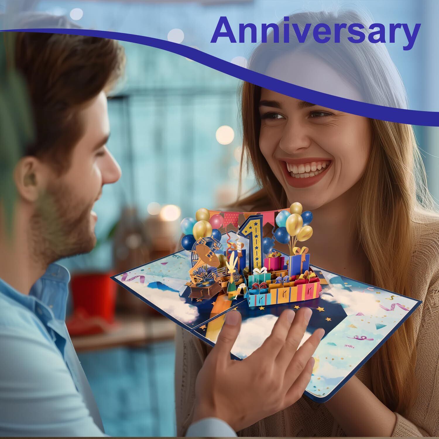 Magic Ants アニバーサリーポップアップカード、1歳の誕生日カード、1年結婚記念日カード、3Dグリーティングカード、1歳の誕生日カード、おめでとうカード