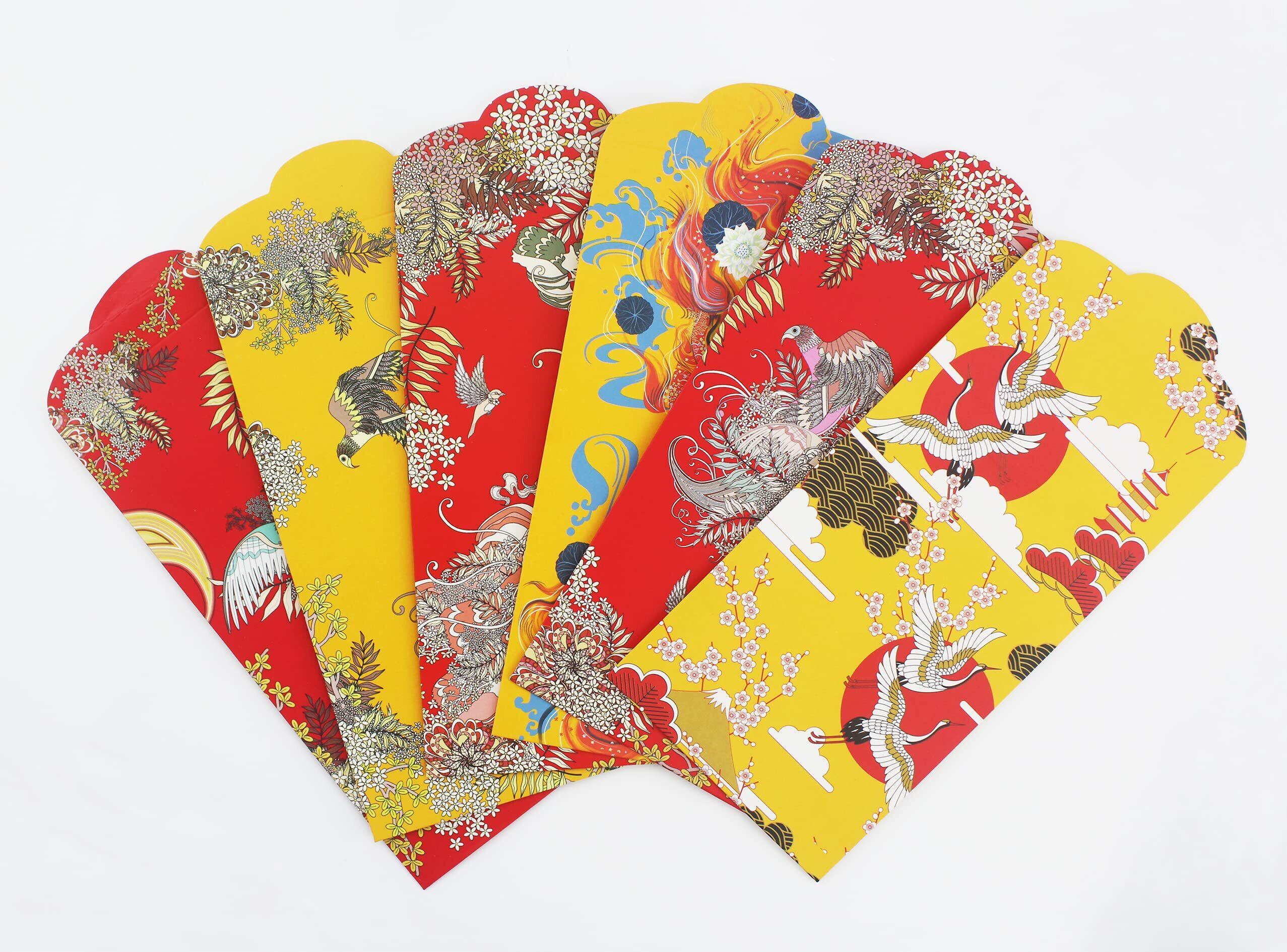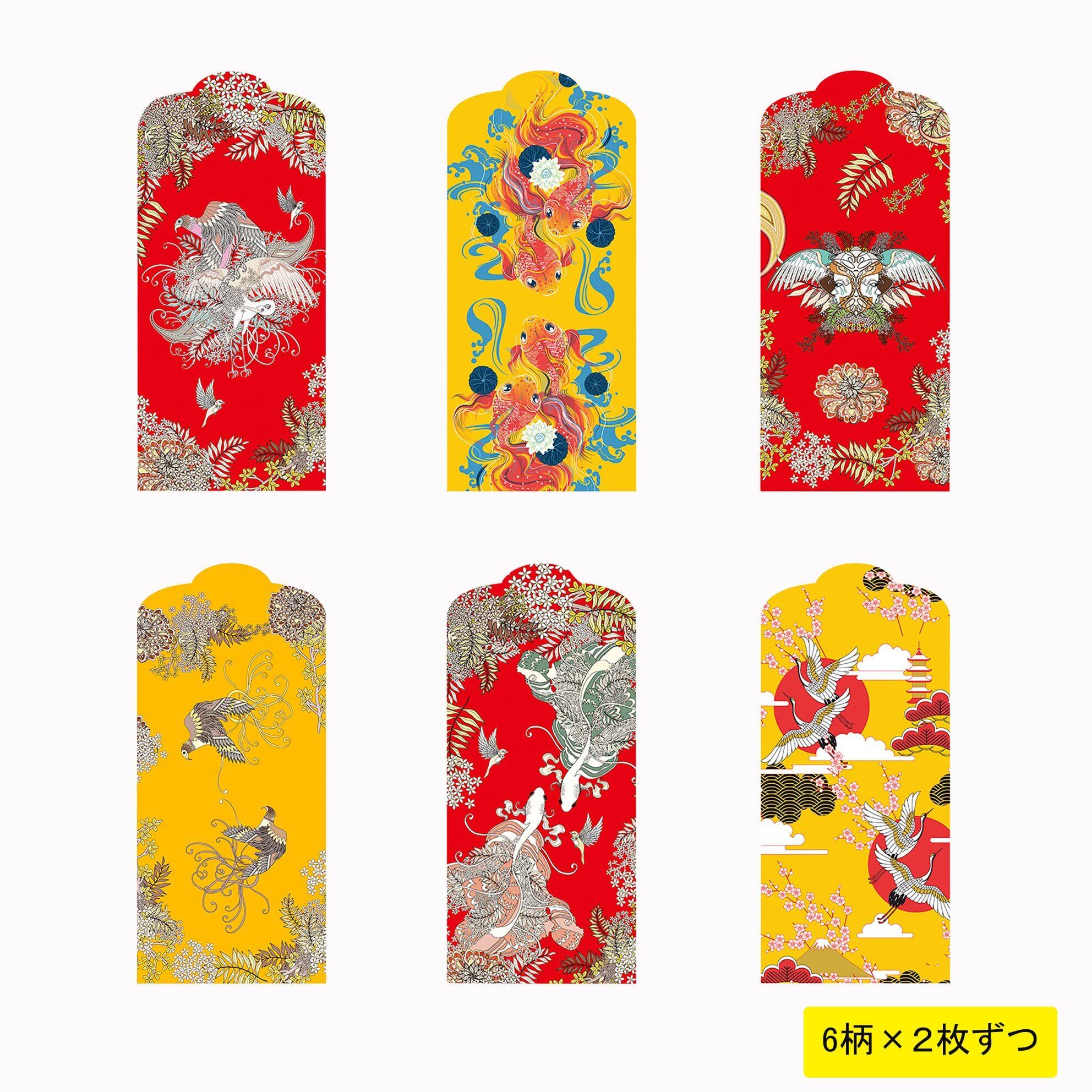 ポチ袋 お年玉袋 祝儀袋 お礼 お祝い 金封 長タイプ 12枚入 (花鳥魚6種類×2枚ずつ)
