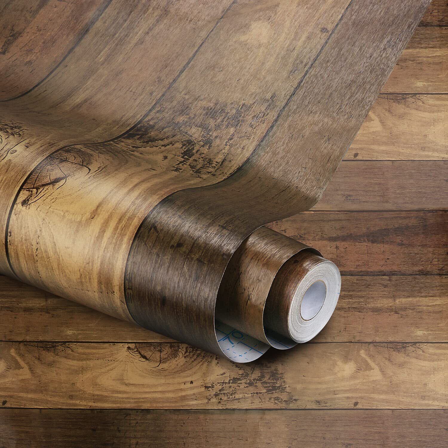 壁紙シール はがせる おしゃれ 壁紙 厚手 リメイク リフォーム カッティング シート ウォール ステッカー 木目調 長さ10m 壁紙 (ダークブラウン 木目)