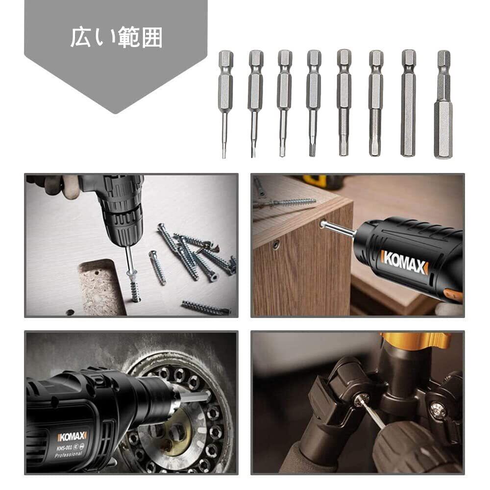 サムコス 六角レンチビット インパクトドライバービット 精密ドライバー 六角轴 6.35mm 磁気吸着 1.5mmー8mm ドリル ビット工具 50mm長六角ビット 8本セット
