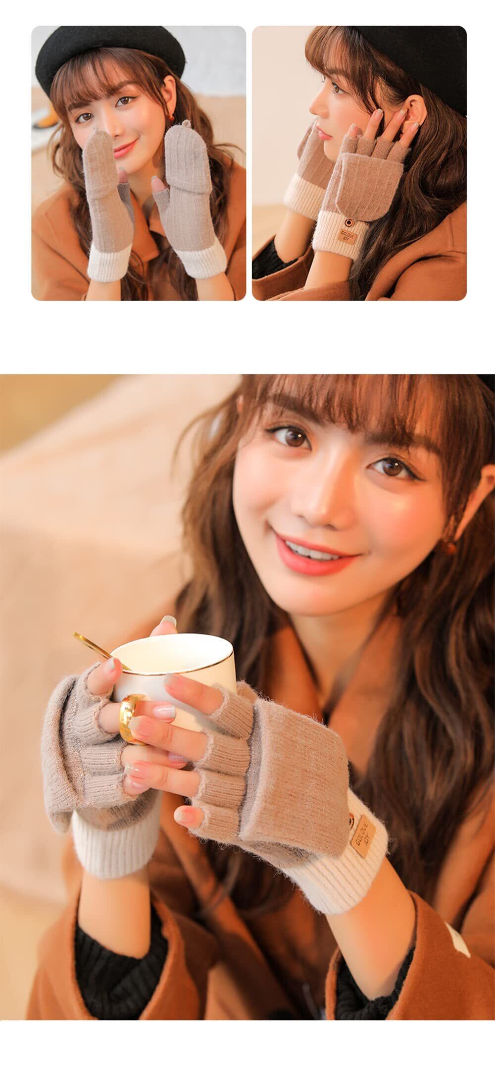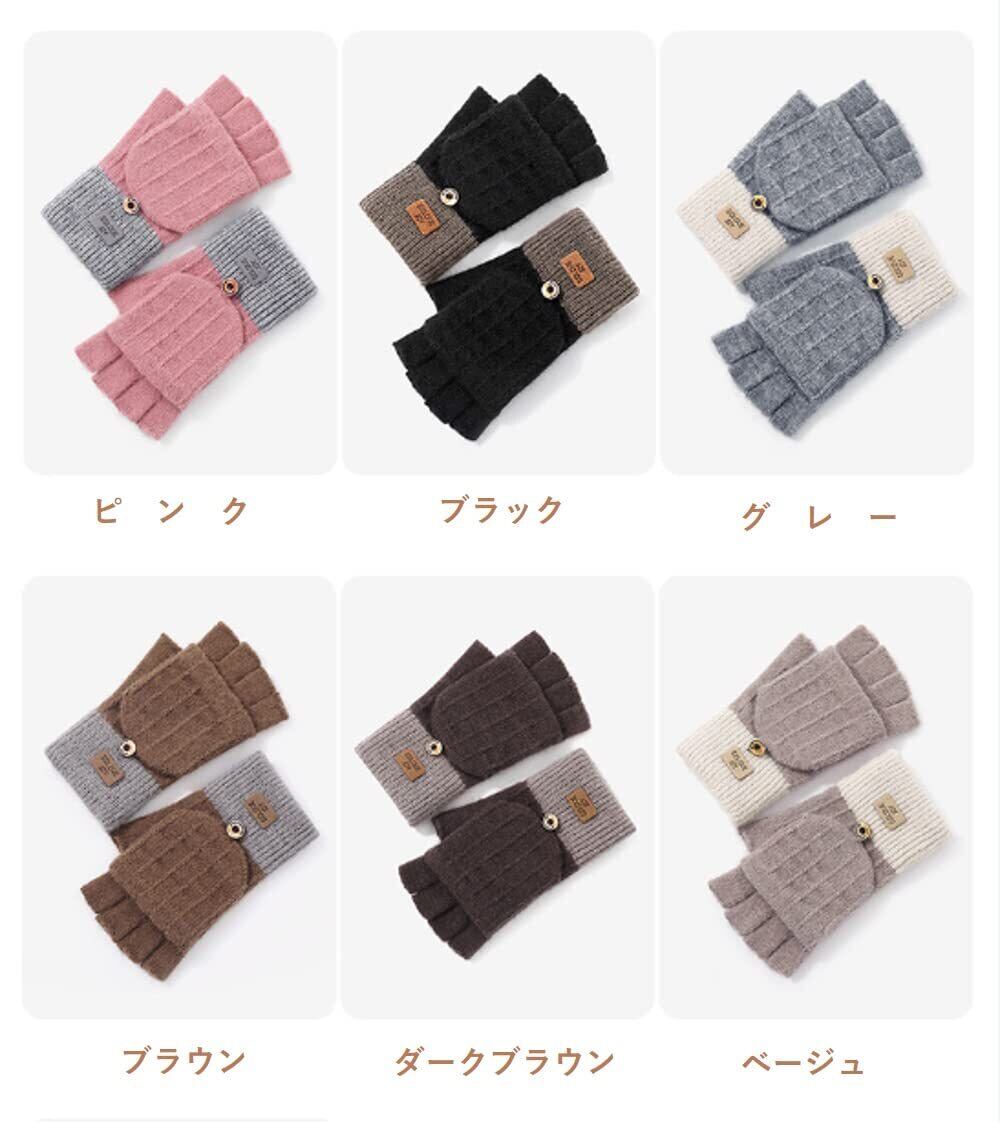 [Rose] レディース手袋 指なし手袋 ミトン付き スマホ対応可 防寒 ニット 可愛い 冬 通勤通学 お出掛け 指先カバー付き