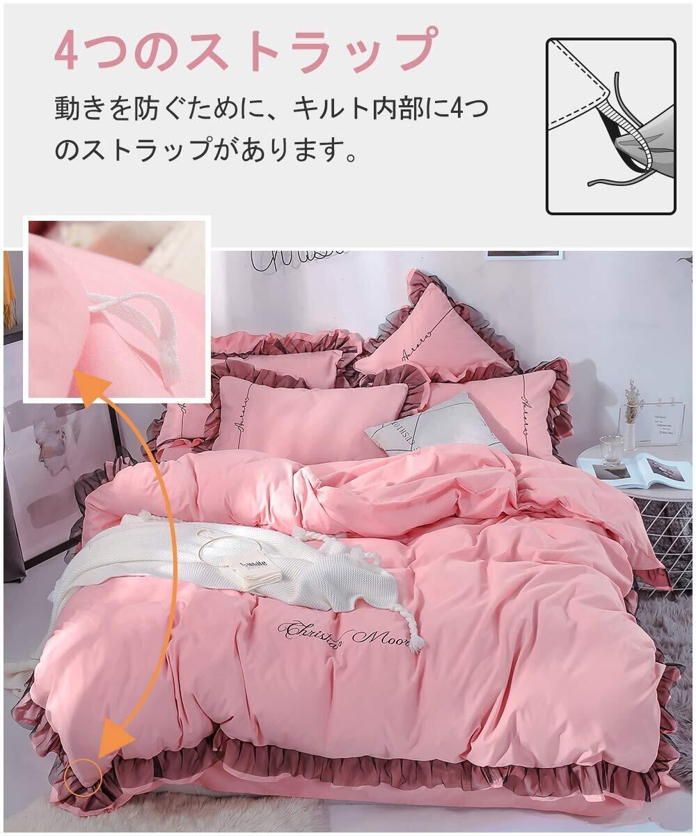 布団カバー シーツ 刺繍 蓮の葉 寝具カバーセット 掛け布団カバー ボックスシーツ 枕カバー ベッド用 布団用 洗い替え速乾タイプ(ピンク A4, シングル・3点セット)