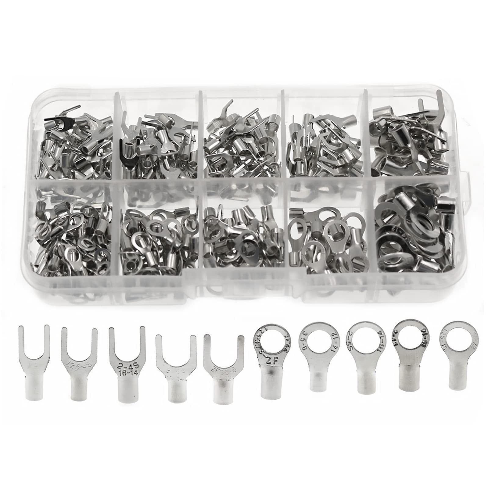 端子セット 320枚丸型端子 圧着端子 裸圧着端子 銅素材 錫メッキ面 O型 U型 複数のサイズ コネクタ 低周波 電線接続用 SNBとRNBモデルの 配線組み合わせセット 収納ケース付き | yankees