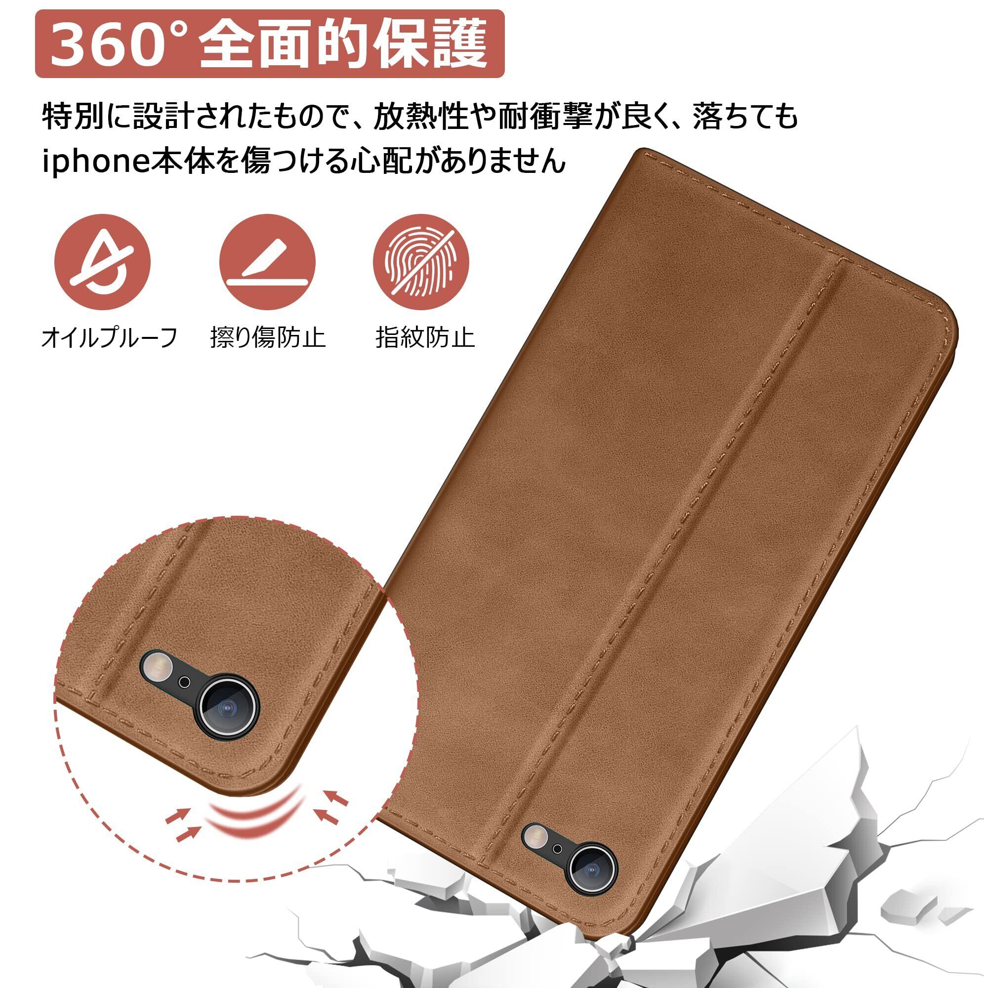 FAUNOW iPhone SE ケース 第2世代 iPhone8 ケース iPhone7 ケース スマホケース 手帳型 携帯カバー レザー 耐衝撃 軽量 着脱しやすい 放熱性 マグネット式 カード収納 スタンド機能 4.7インチ対応(ブラウン)