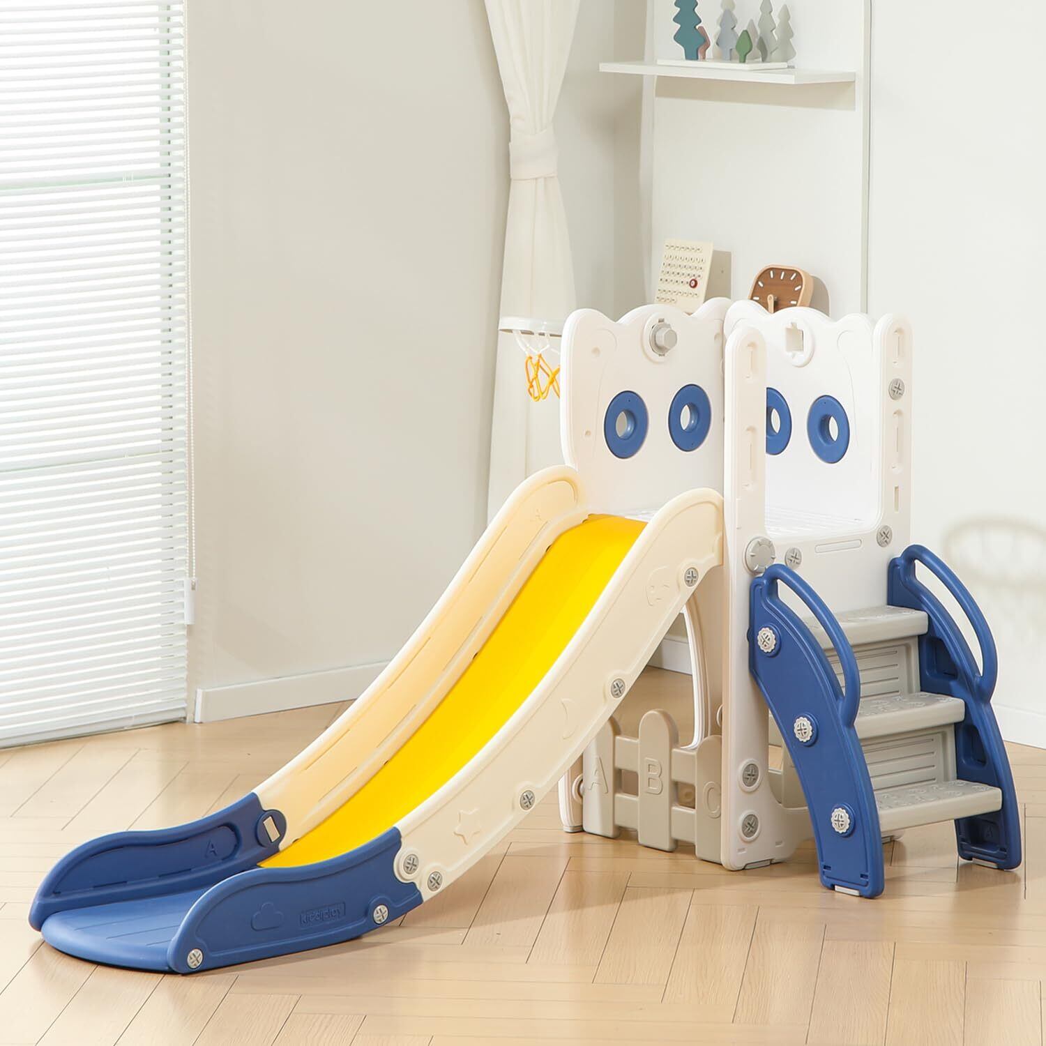 【多機能滑り台】 スライダー機能に加えて、バスケットボール投げなどの遊びを楽しめます、子供たちの想像力を刺激し、楽しさを倍増させます。