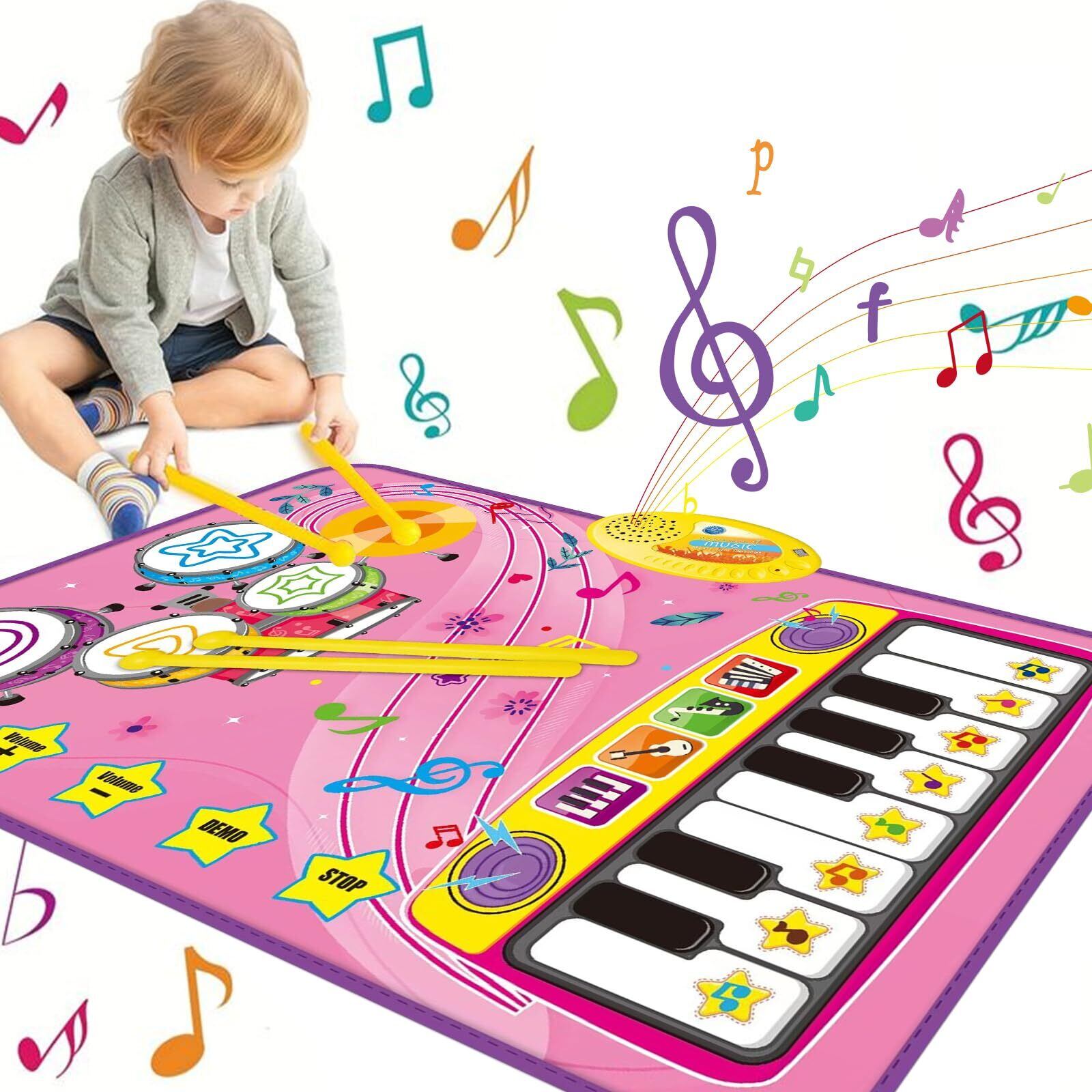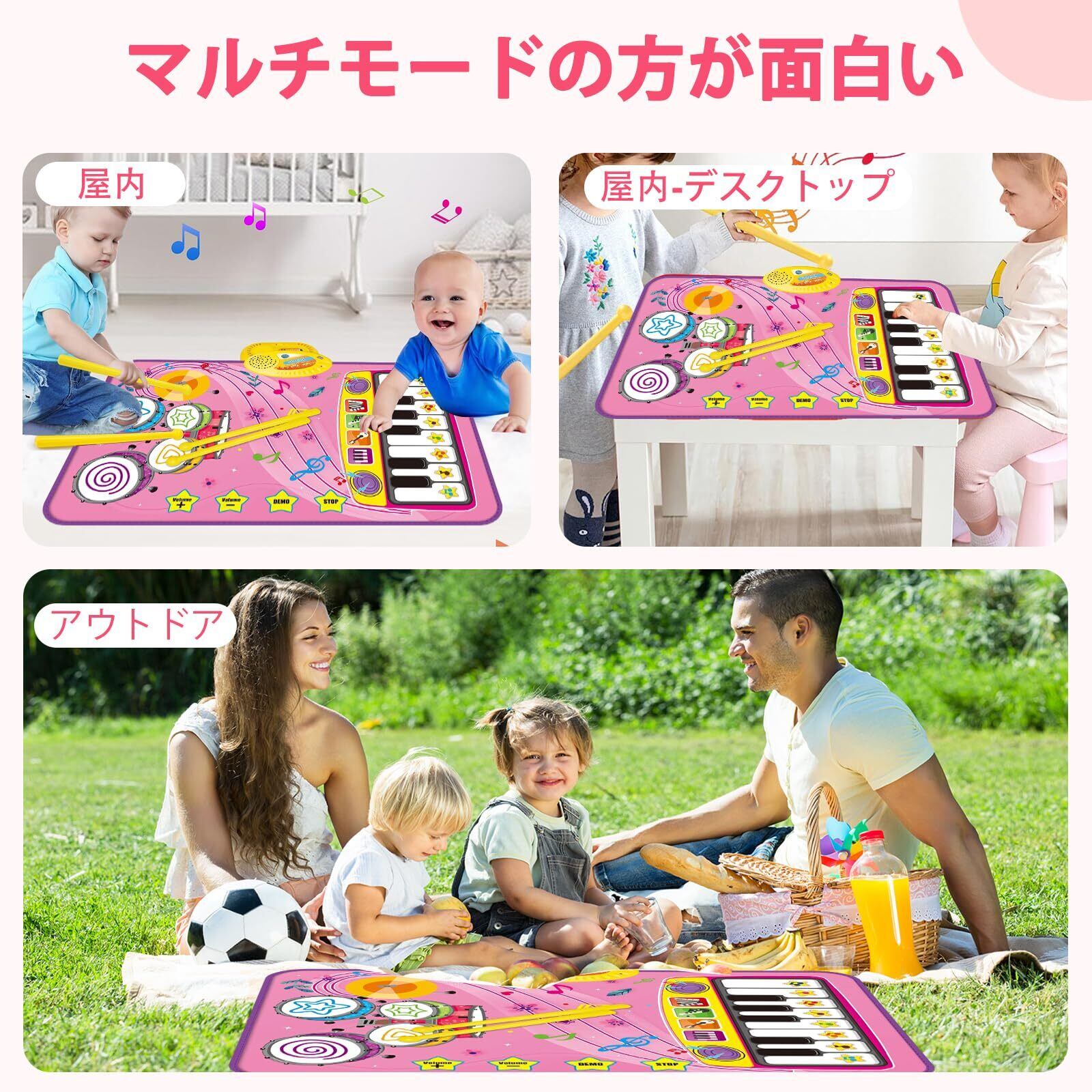 【2in1ミュージックマット 】:このミュージックマットは、ピアノ鍵盤、ドラムセット、5曲デモ、ハードル サックス ヴァイオリン ピアノの楽器が備えています。子供は、ドラムを叩いてピアノキーボードを演奏することができます。