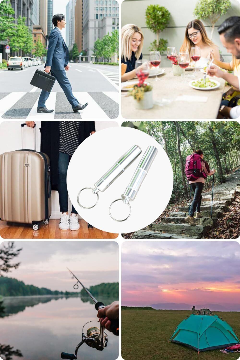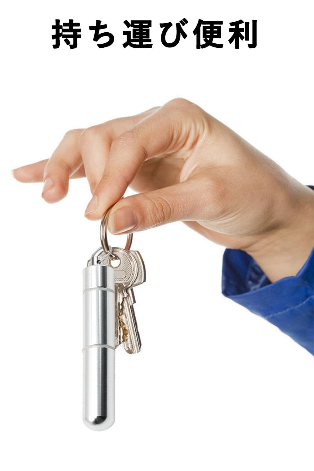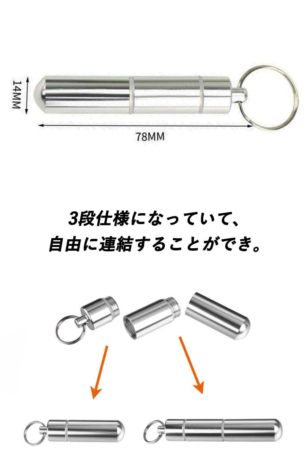 楊枝入れ 爪楊枝ケース 爪楊枝入れ 綿棒入れ 爪楊枝筒 小物収納 携帯用 ポータブル アウトドア 3連構造 キーホルダー付き シルバー 2本セット