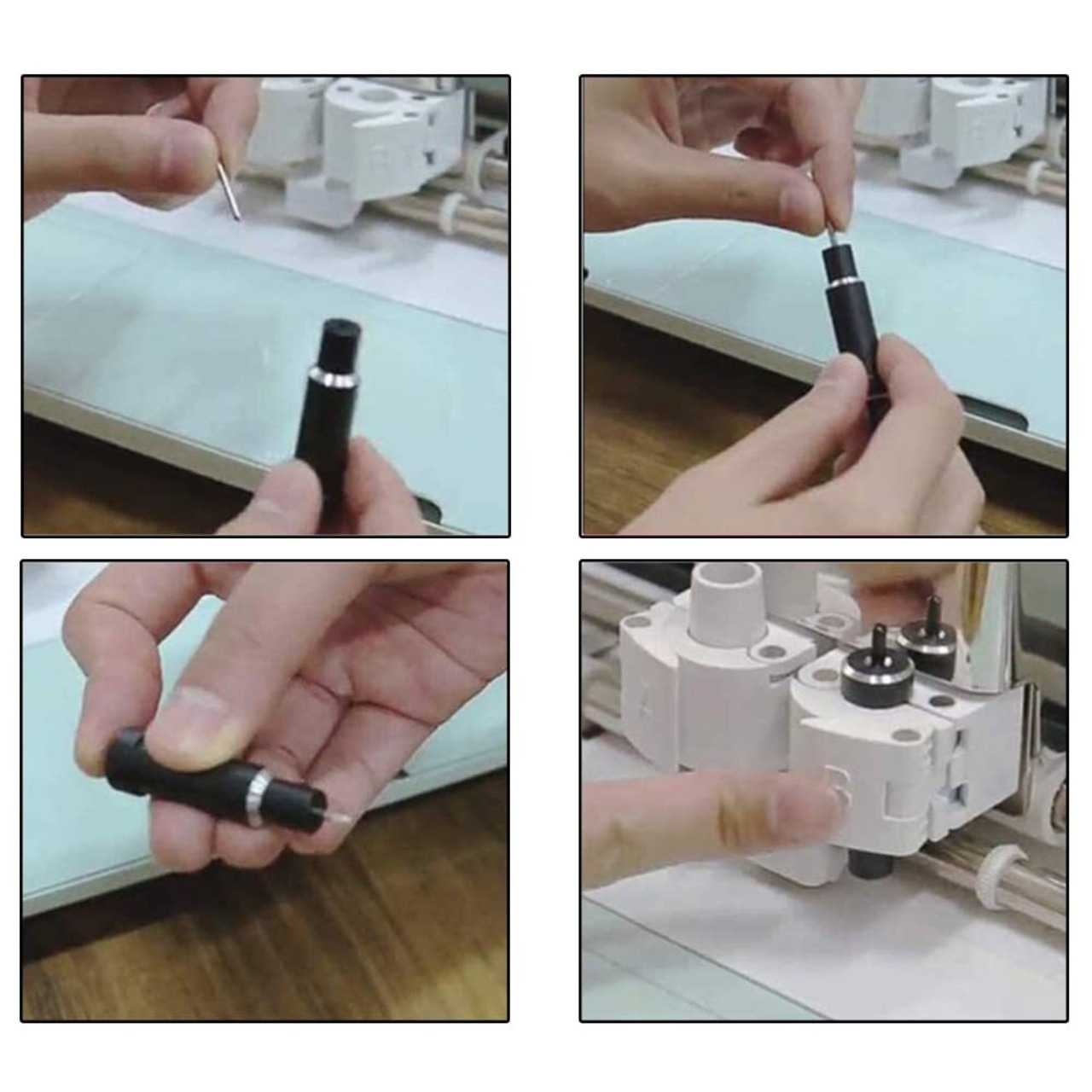 【使いやすい】ブレードの保護キャップを取り外し、ブレードをブレードホルダーに差し込むだけで、簡単にプロッタカッターに取り付けることができます。