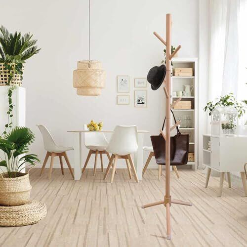 【天然木の質感】 材料は、柔らかい松ではなく、より高価な硬くて滑らかなブナです。天然の木を加工して出来たポールハンガーですので、表面は手触り良く滑らかな仕上がりで、丈夫である。環境に優しい塗装、ホルムアルデヒドなし。樹木の外観は自然の美しさを持っています。