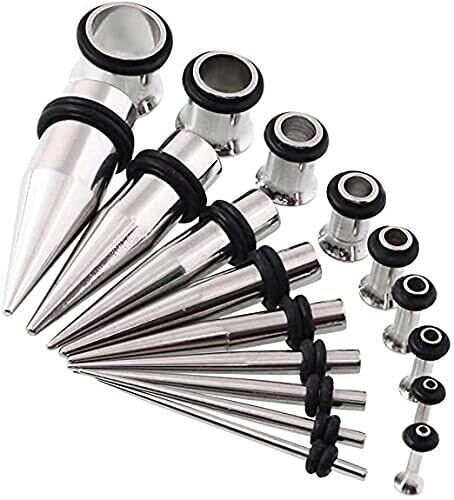 拡張器 ピアス セット 36点 ステンレス ボディピアス 14G-00G ダブルフレア トンネル キャッチ ネジ式 ゴムキャッチ メンズ レディース 拡張ピアス 金属アレルギー対応 男女兼用 | yankees