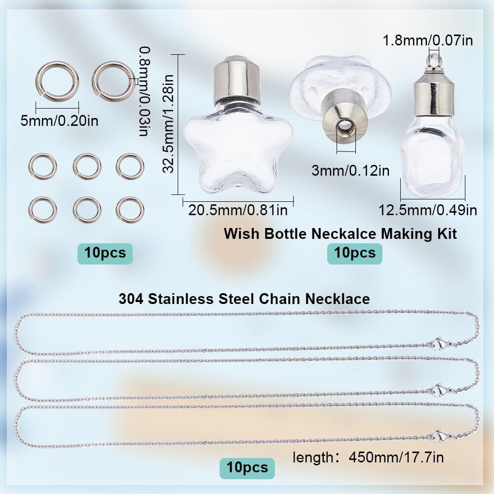 1ボックス30個のネックレス作成キット: 10個の星型ガラスボトルをお届けします。オープン丸カン10個とステンレスチェーン10個。 ネックレス作成キットの保管と保護に役立つプラスチック製のボックスが付属しています。