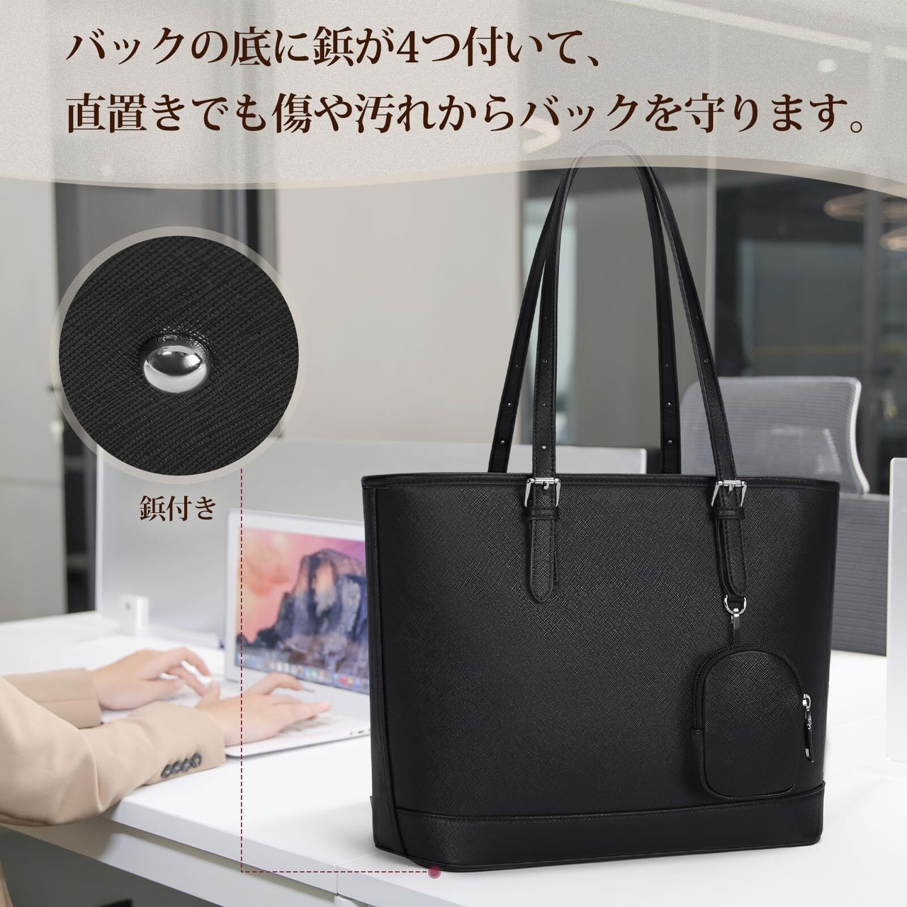 【自立機能】通勤やビジネスはもちろん、オフィス外での商談や打ち合わせなどの際にも床に立てられて置き場所に困らず、商談や仕事の邪魔にならず、仕事に集中できる自立式のレディースバッグです。また、バックの底に鋲が4つ付いております、いつでもどこでも、急な対応の時にもサッと床に置ける、汚れを軽減する底鋲付きの使いやすい鞄です。