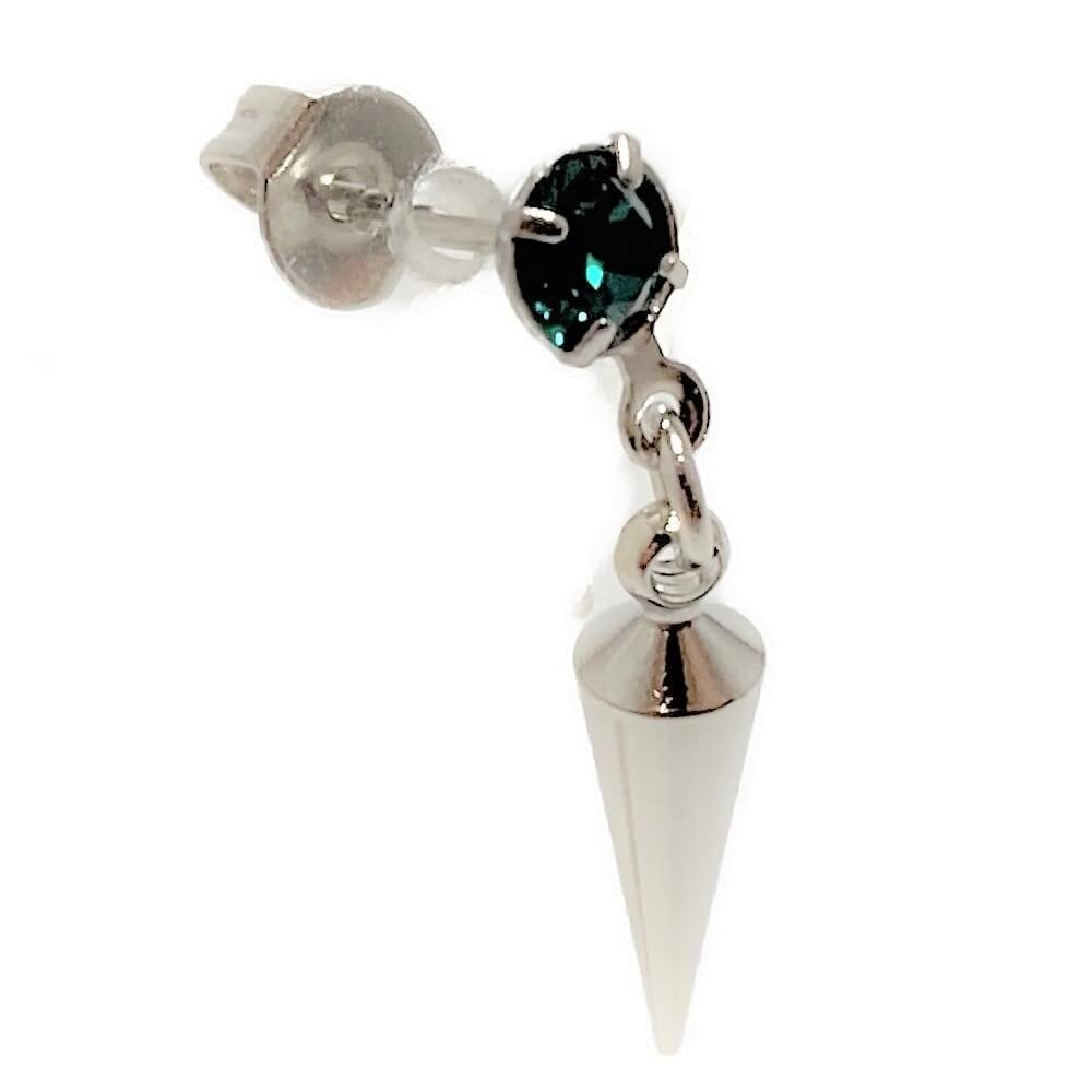 ピアス 片耳 クリスタル シンプル メンズ レディース スタッド ダガー (グリーン 緑 (シルバー))