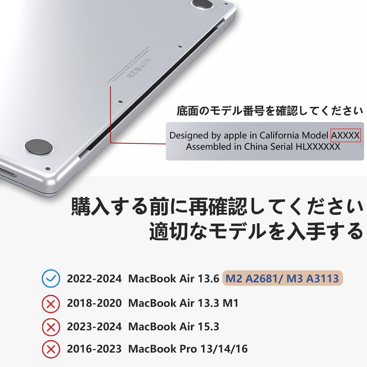 【対応機種】MacBook Air 13.6インチ2025 2024 2023 2022 M4 M3 M2チップ搭載モデル/Touch ID搭載 2025 2024 2022年モデル (Model番号:A3240 A3113 A2681)※必ずご注文前に対応機種とモデル番号(Axxxx)をご確認ください。Model番号はMacBookの底面に記載されています。