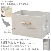 【見える面をおしゃれに】カラーボックスに収納した時には見えないサイドやバッグは従来品のまま、見える前面のみをおしゃれにすることでコストパフォーマンスを上げた2個セットの収納ボックス。前面は麻風素材に木製取っ手が付いており、お部屋に馴染みやすいデザインになっています