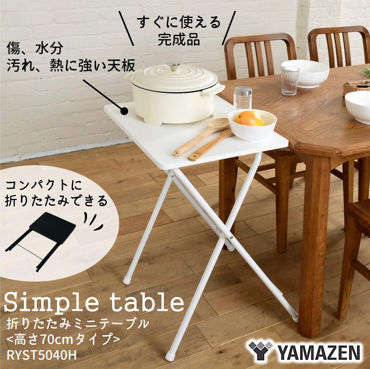 山善(YAMAZEN) 折りたたみテーブル 高さ70 傷・汚れ・水分・熱に強い 幅50×奥行48cm サイドテーブル ミニテーブル 完成品 ホワイト/ホワイト RYST5040H(WHWH2) テレワーク | yankees