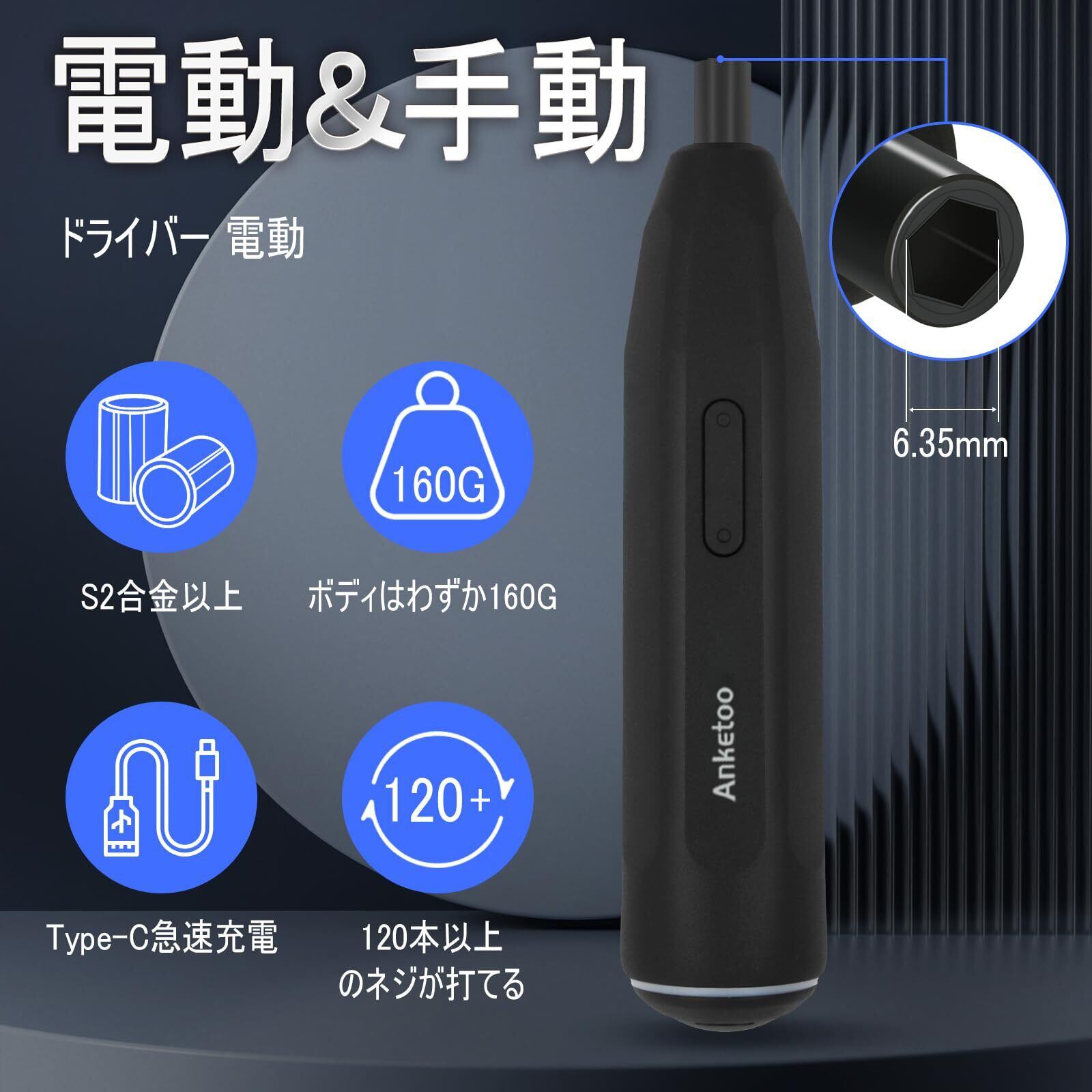 電動ドライバー 小型 Anketoo,3.6Vドライバー 電動,TYPE-C 電動ドライバー 充電式,18個の磁気吸着ドリル,ハンドヘルド電動ドリル 小型,正逆切替式ミニ電動ドライバー,ポータブル電動ドライバーセット,2時間連続放電可能(無負荷時),初心者、家庭でのDIYに適している