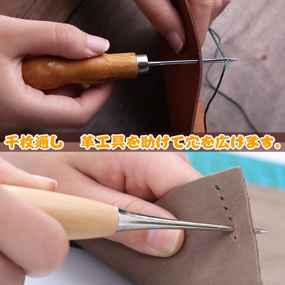 パッケージ内容:蝋引き糸、手縫い針、千枚通し、指ぬき、革用針、はさみなど。革工芸品の基本的な革工具を揃ってセットになり、基本的なニーズを満たすことができる。重量:0.2kg