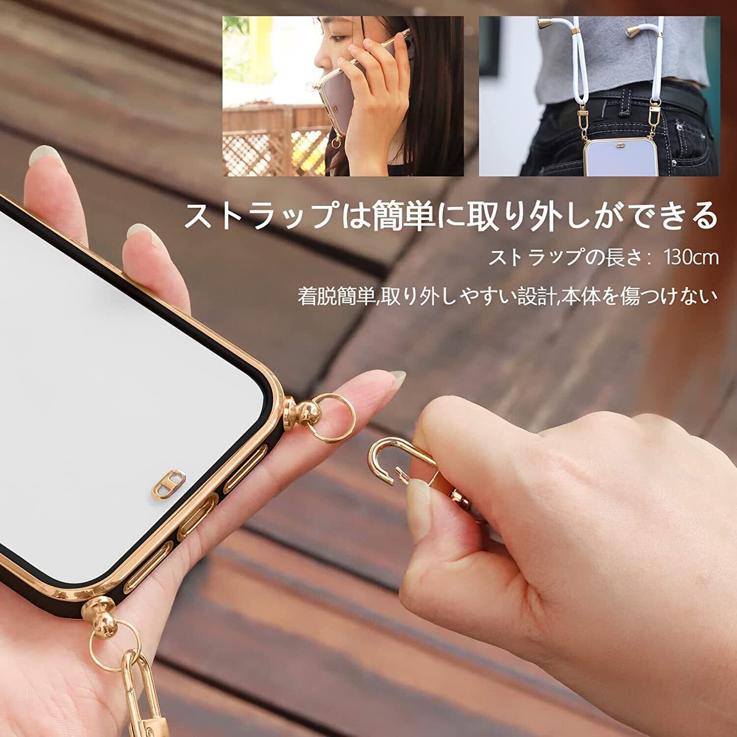 iPhone13 mini ケース ショルダー クリア いphone13 mini スマホケース カバー 肩掛け 首掛け 斜めかけケース 可愛い かわいい 韓国 透明 TPU 薄型 耐衝撃 シリコン アイフォン13mini(ブラック) | yankees
