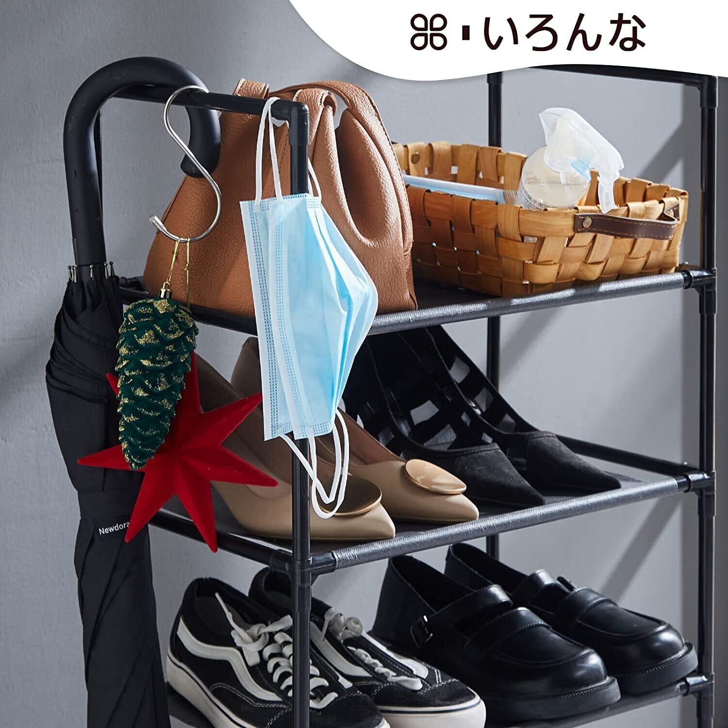 シューズラック10段 靴収納 分割可 シューズラックスリム 省スペース 組み立て式 10足 不織布 玄関に靴を効率収納 (ブラック、10段)