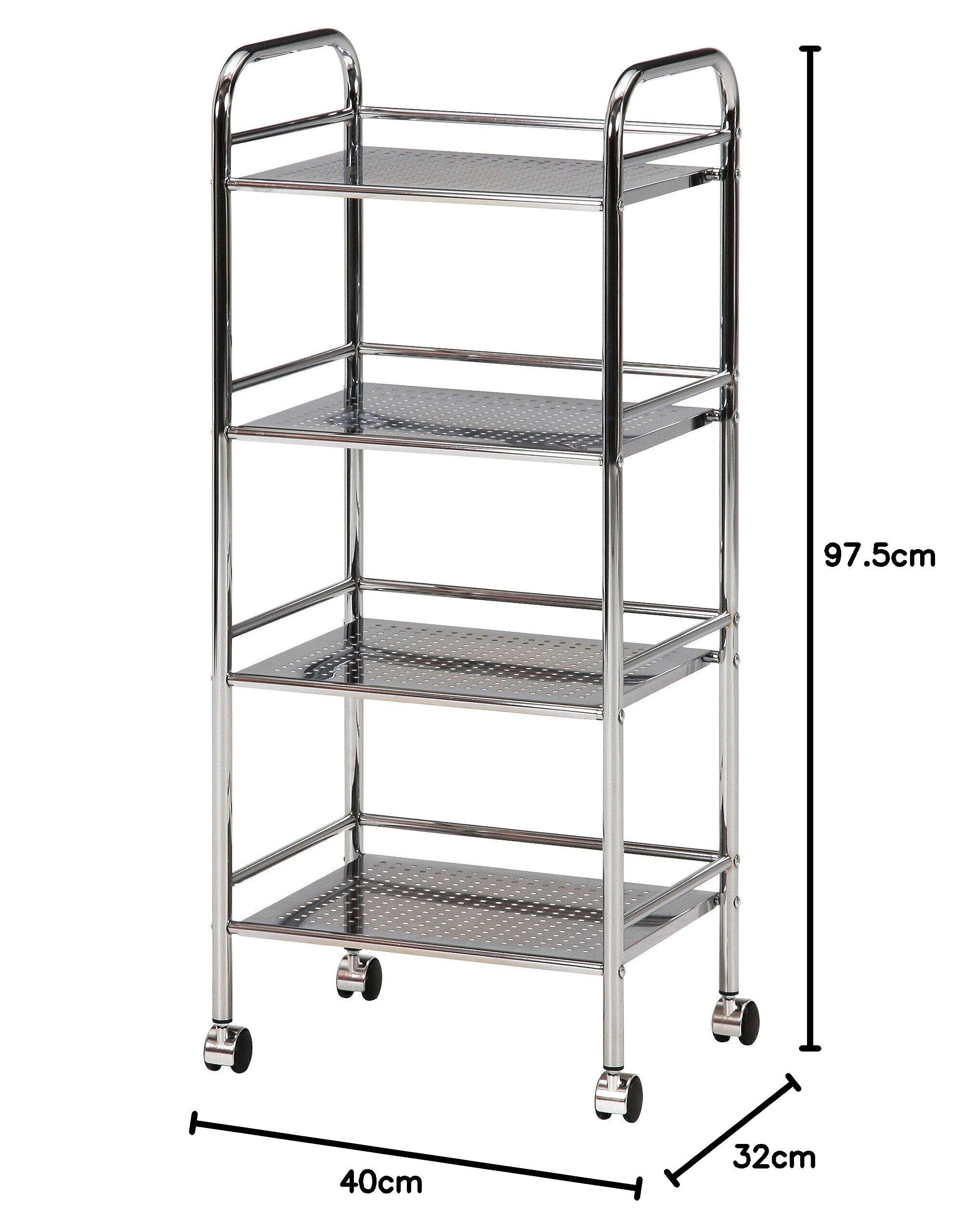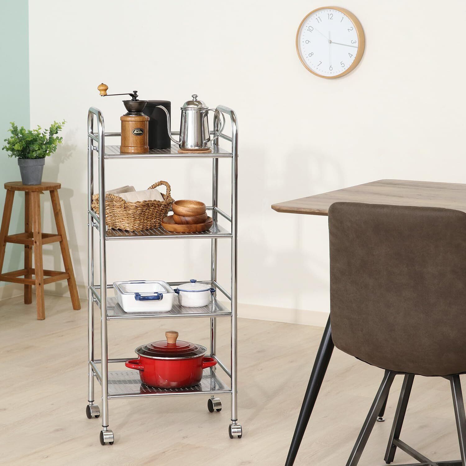 不二貿易 キッチンワゴン ラック 4段 幅40×奥行32×高さ97.5cm シルバー キッチン収納 スチール キャスター付き 組立商品 93399