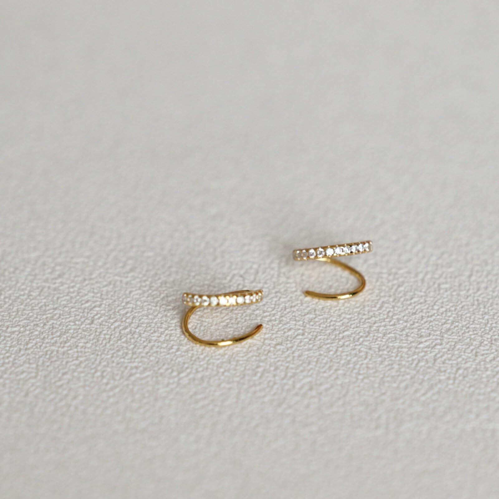 キラキラとしたジルコンがあしらわれたネジリピアスです。