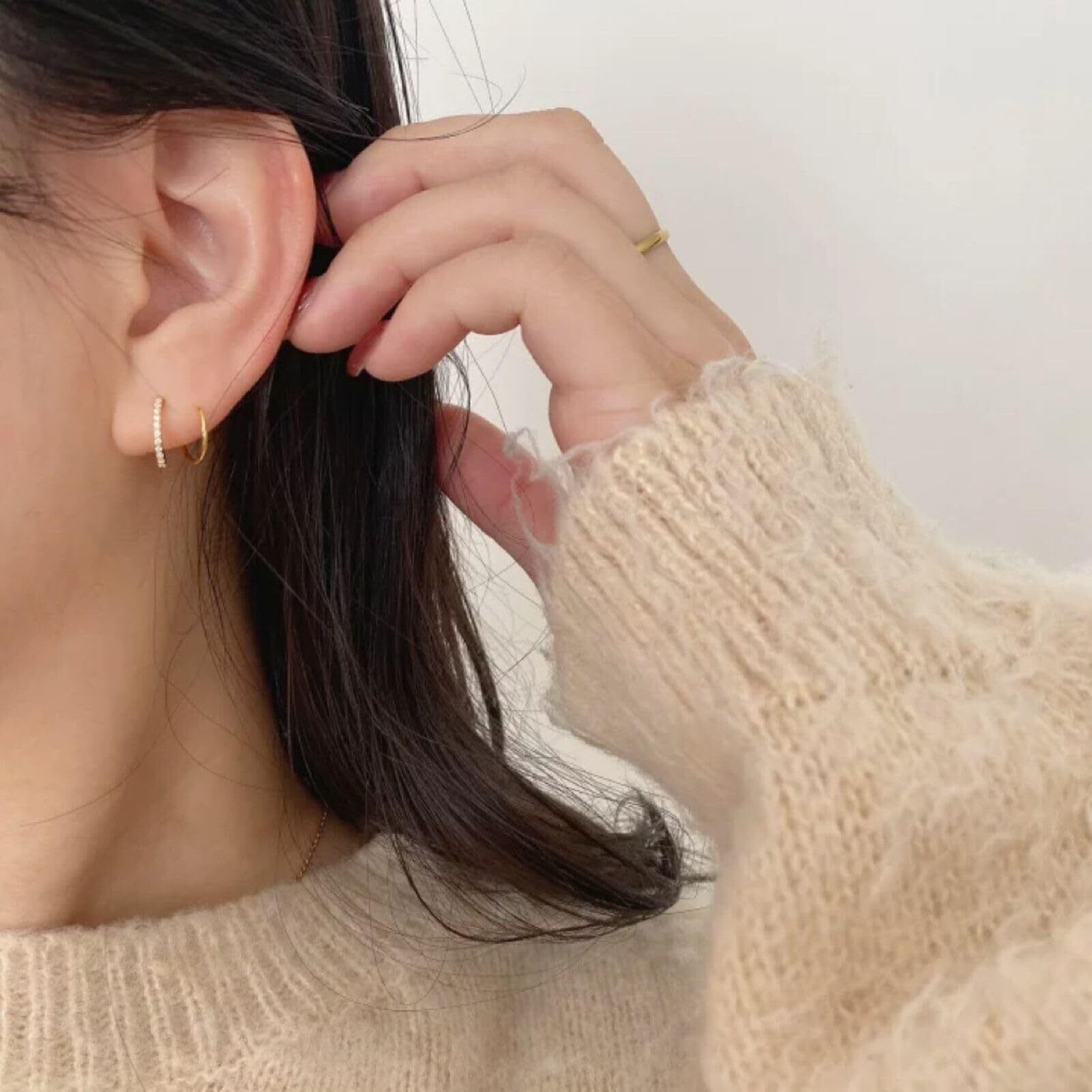Moonstan ピアス レディース 人気 金属アレルギー対応 シルバー925 ゴールド シルバー キュービックジルコニア キラキラ 細め ツイスト シンプル つけっぱなし