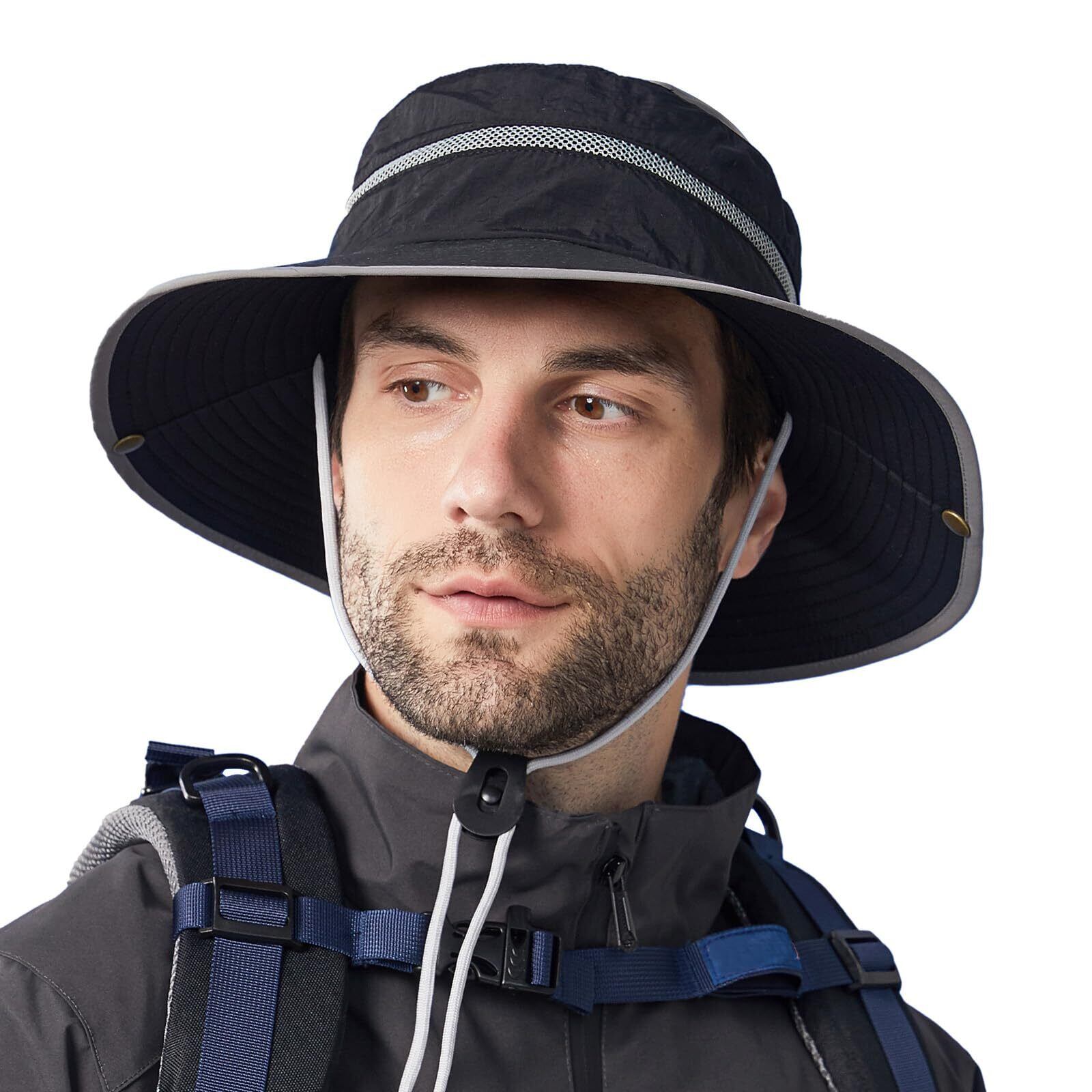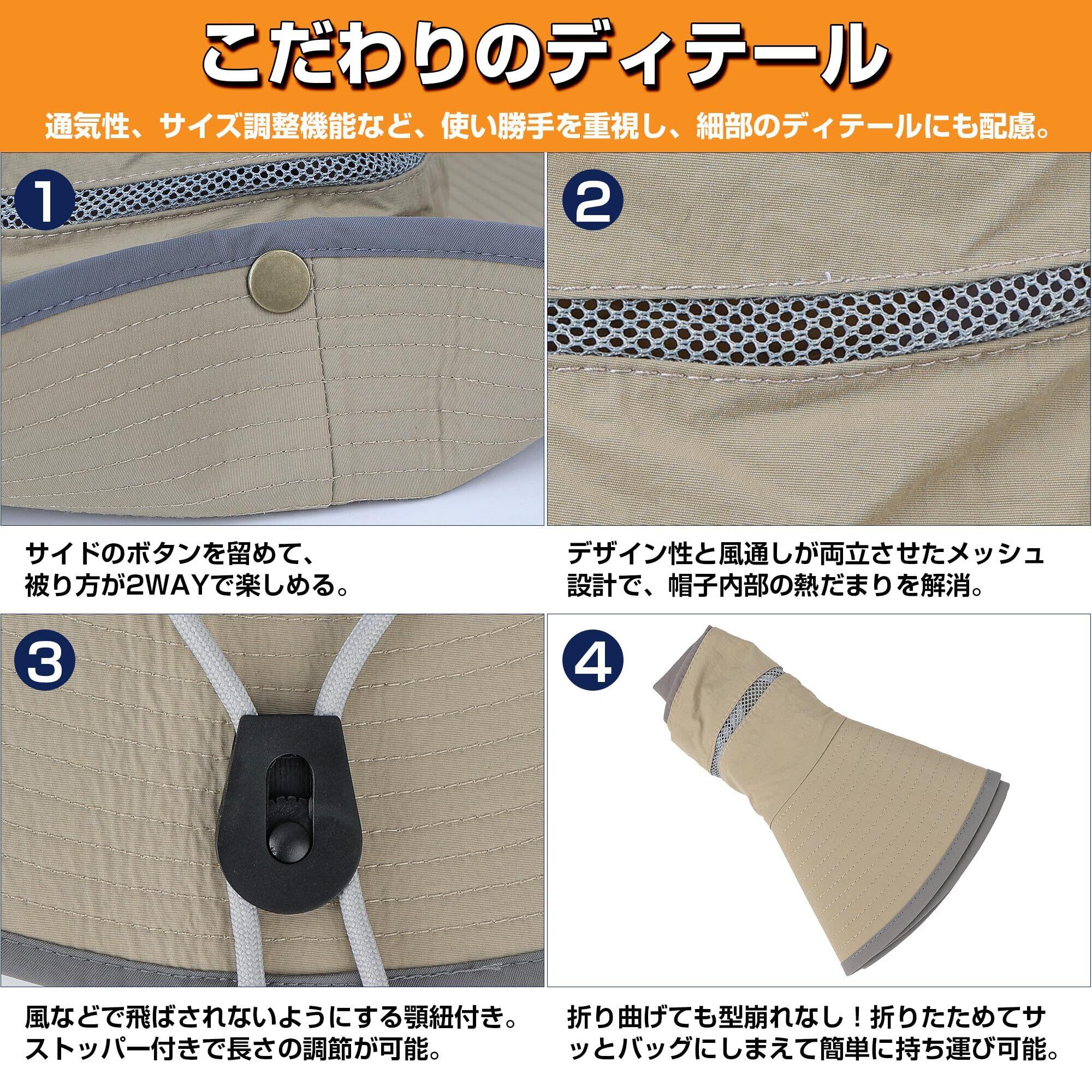 [HASOME] サファリハット メンズ 帽子 【メッシュ通気構造・撥水速乾・折りたためる】 サイズ調整可能 あご紐付き UVカット 軽量 紫外線対策 トレッキング/登山/ウォーキング/運動会/キャンプ/釣り/作業 アウトドア