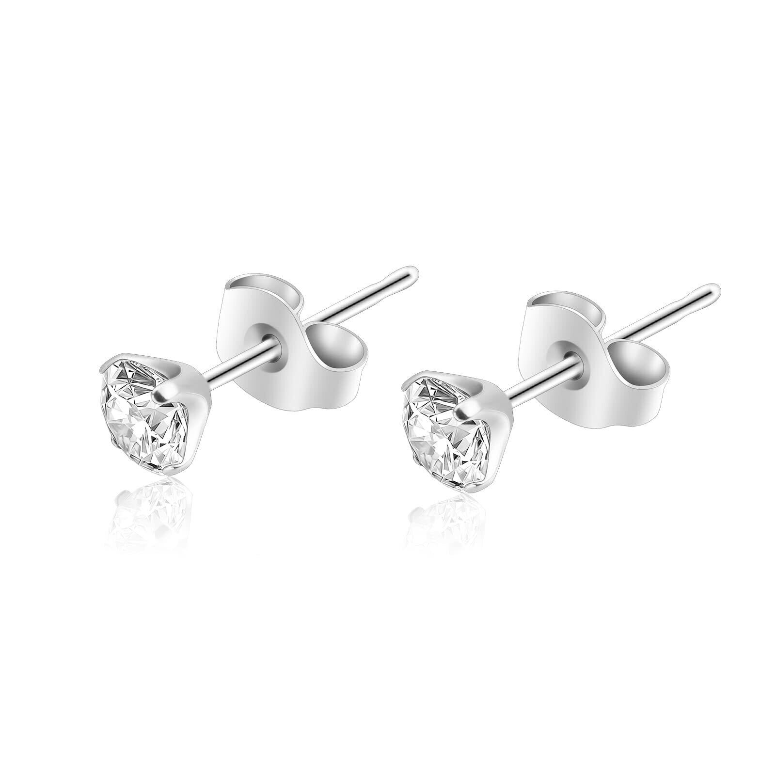 Khoka ピアス 純チタン ピアス メンズ レディース 3/4/5mm ジルコニアピアス つけっぱなし CZ 軸太0.8mm(20g) 人気 ピアス 金属アレルギー対応 両耳セット シルバー ポスト11mm