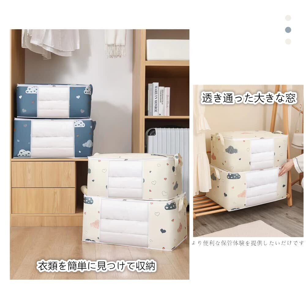 布団収納袋 不織布 布団収納ケース ふとん収納 2個セット 布団収納バッグ 大サイズ ふとん収納袋 大容量 透明窓 クローゼット 衣類収納 防カビ ストレージバッグ 片づけ 押入れ収納 隙間収納 防塵/防湿/防カビ/防虫 (L, 青)