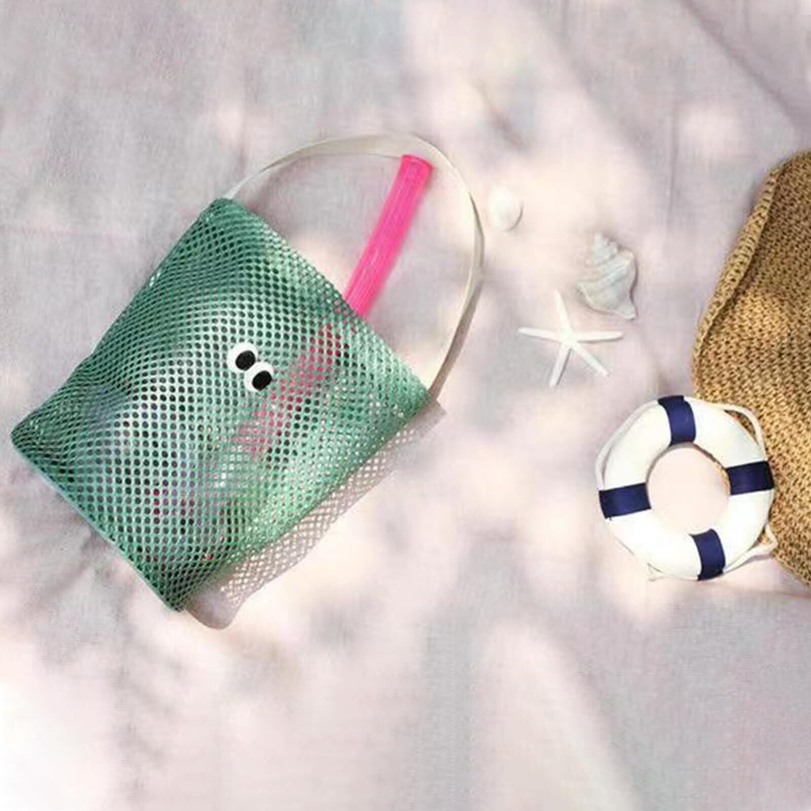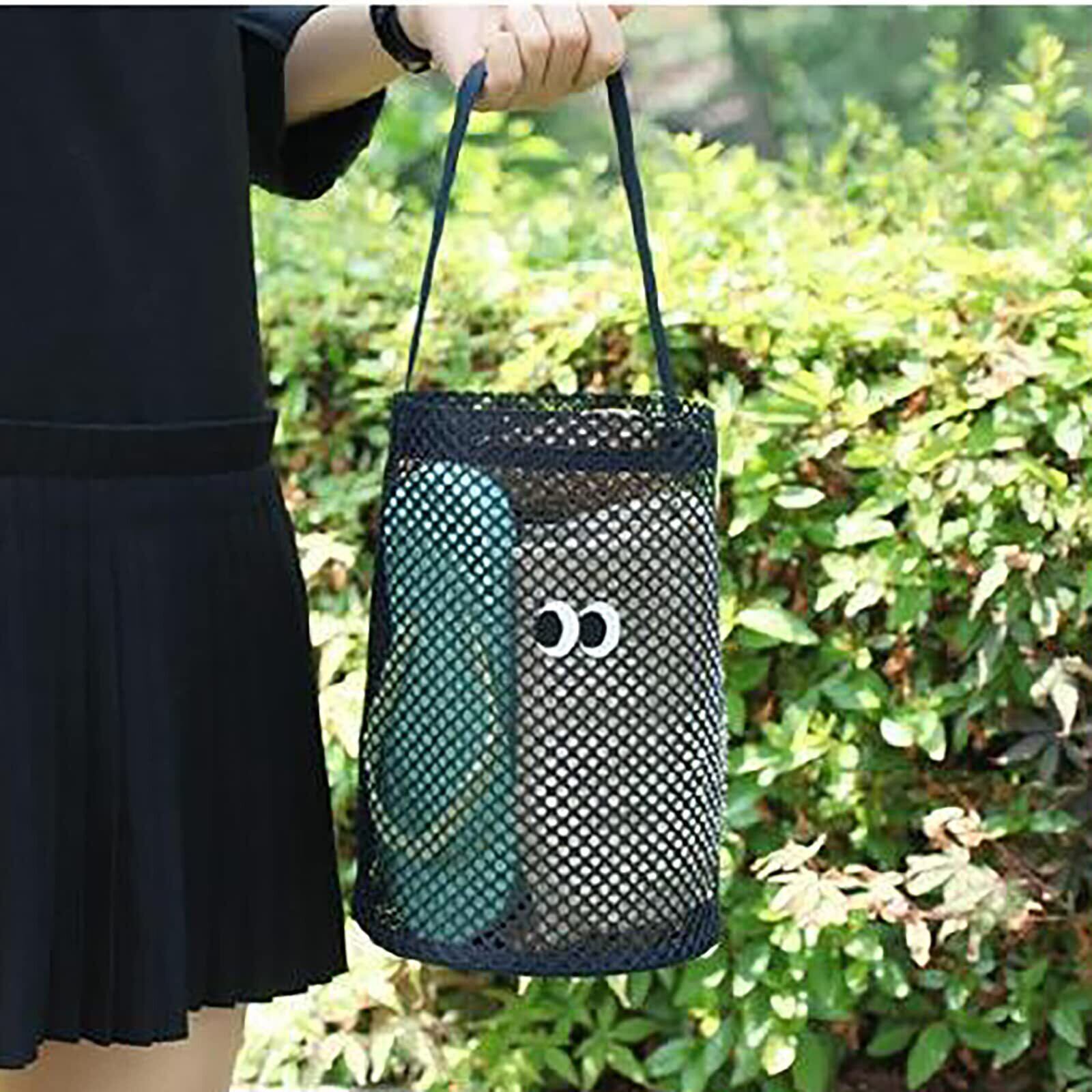 【手提げバッグ】素材はメッシュで通気性がよく、汚れにくく、水を残りません。縫い目もしっかりしたメッシュ素材のため、砂やお水など軽く払えば出てきます。吸水性はなくて、水に沁みられても速乾です。