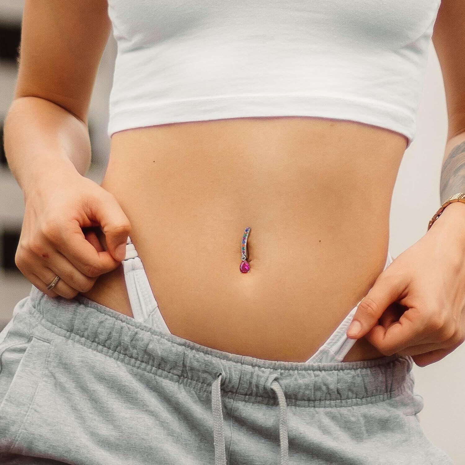 「デザイン」1点のへそピアスです。デザインには一粒のゆれるスタイルであり、衣装に合わせてヘソ飾りをアレンジすることができます。ジルコンはパープル、ピンク、ホワイト、グリーン、ブルー、ブラックがあり、デザインはかわいいですが、人の魅力を高めることができます。