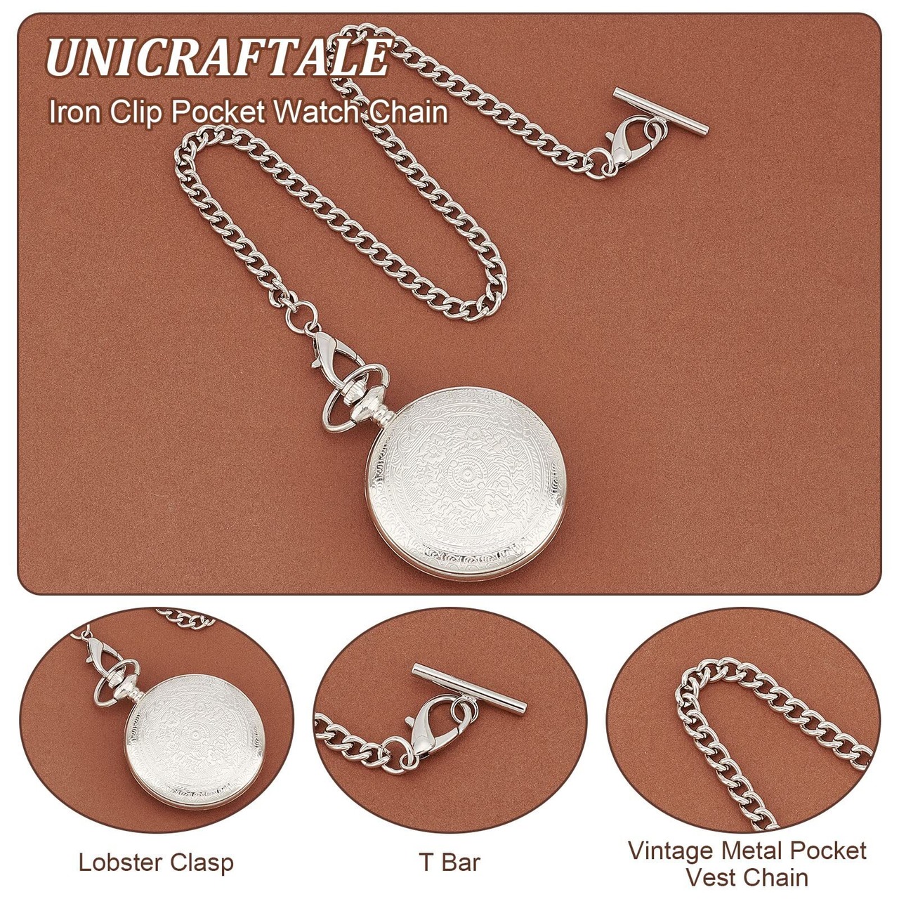 UNICRAFTALE 約2本 2色 懐中時計チェーン ベストチェーン クリエイティブ 金属バックルチェーン カニカンとTバー ハンギングチェーン 懐中時計 チェーン ビンテージ金属懐中時計ベストチェーン 女性 男性 服チェーン ポケット ベルトチェーン