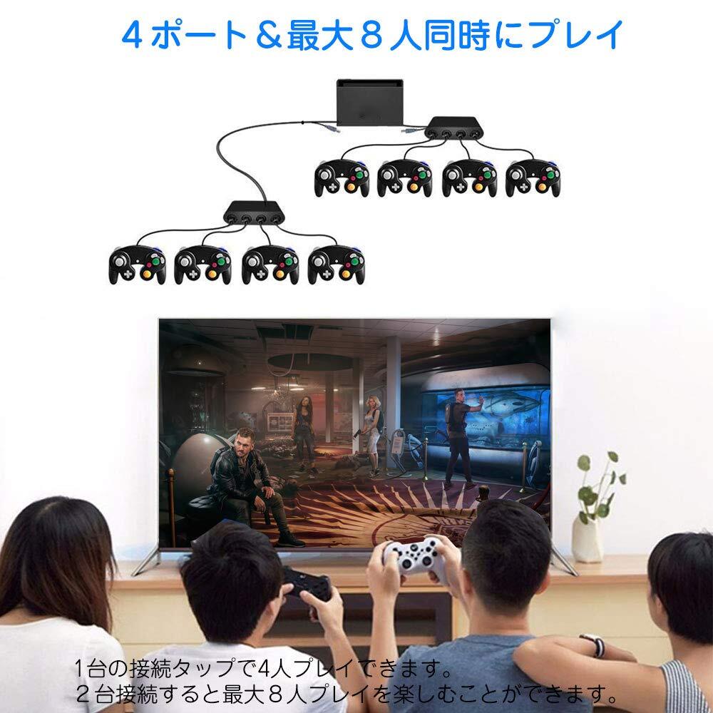 【4ポート&最大8人同時にプレイ】1台のゲームキューブコントローラ接続タップには最大4つのGCコントローラを接続することが可能である。接続タップを2台使うことで最大8人プレイを楽しむことができます。みんなで対戦ゲームを楽しもう!