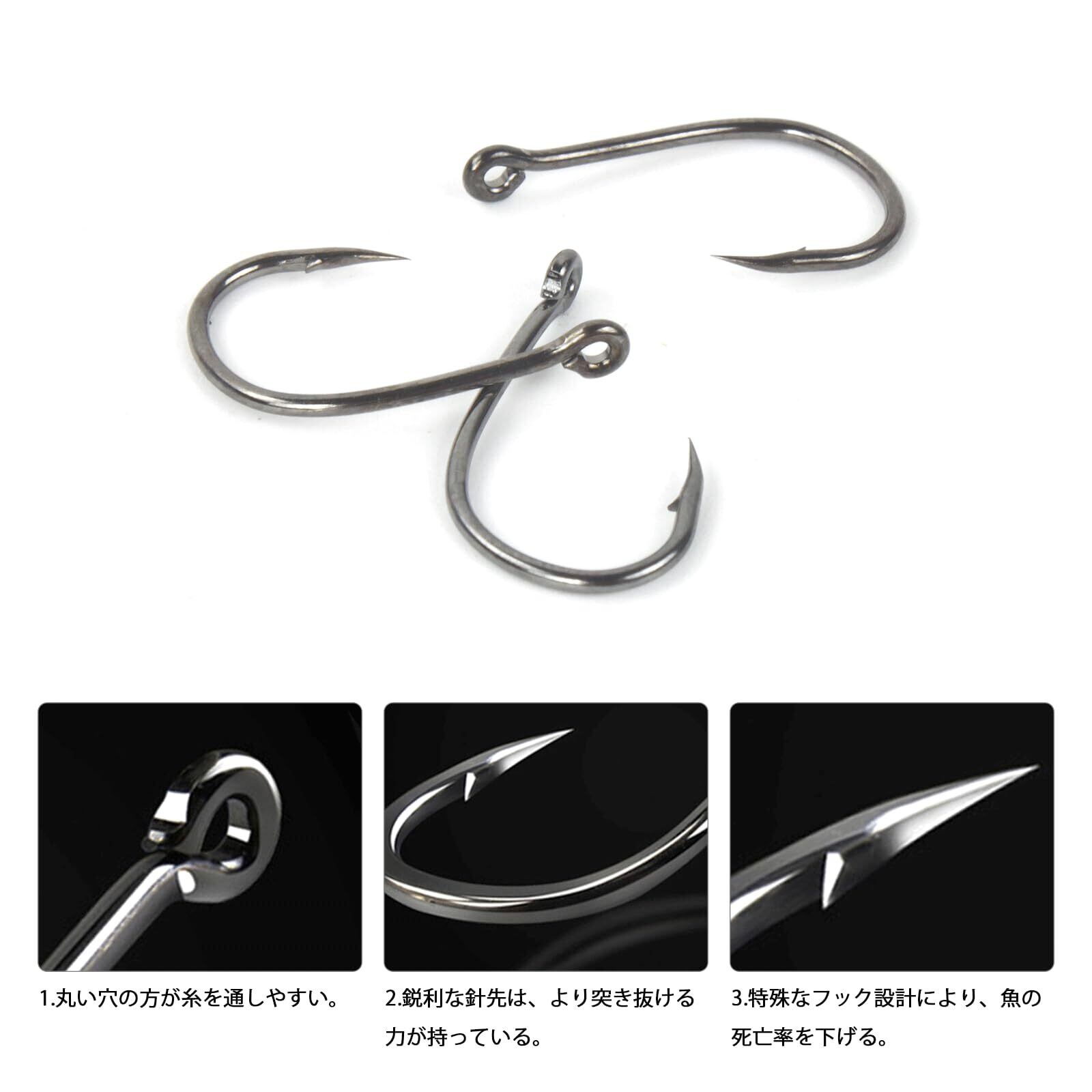 高炭素鋼材質の釣り針は、淡水でも塩水でも、非常に鋭く、耐久性があり、耐食性が素晴らしいです。 高炭素鋼構造とオフセットポイント設計により、淡水釣りや海水釣りに最適です。高炭素鋼の広い曲げはより積極的なフックセットを可能にします。キャッチを着陸させる可能性を確実に高めます。