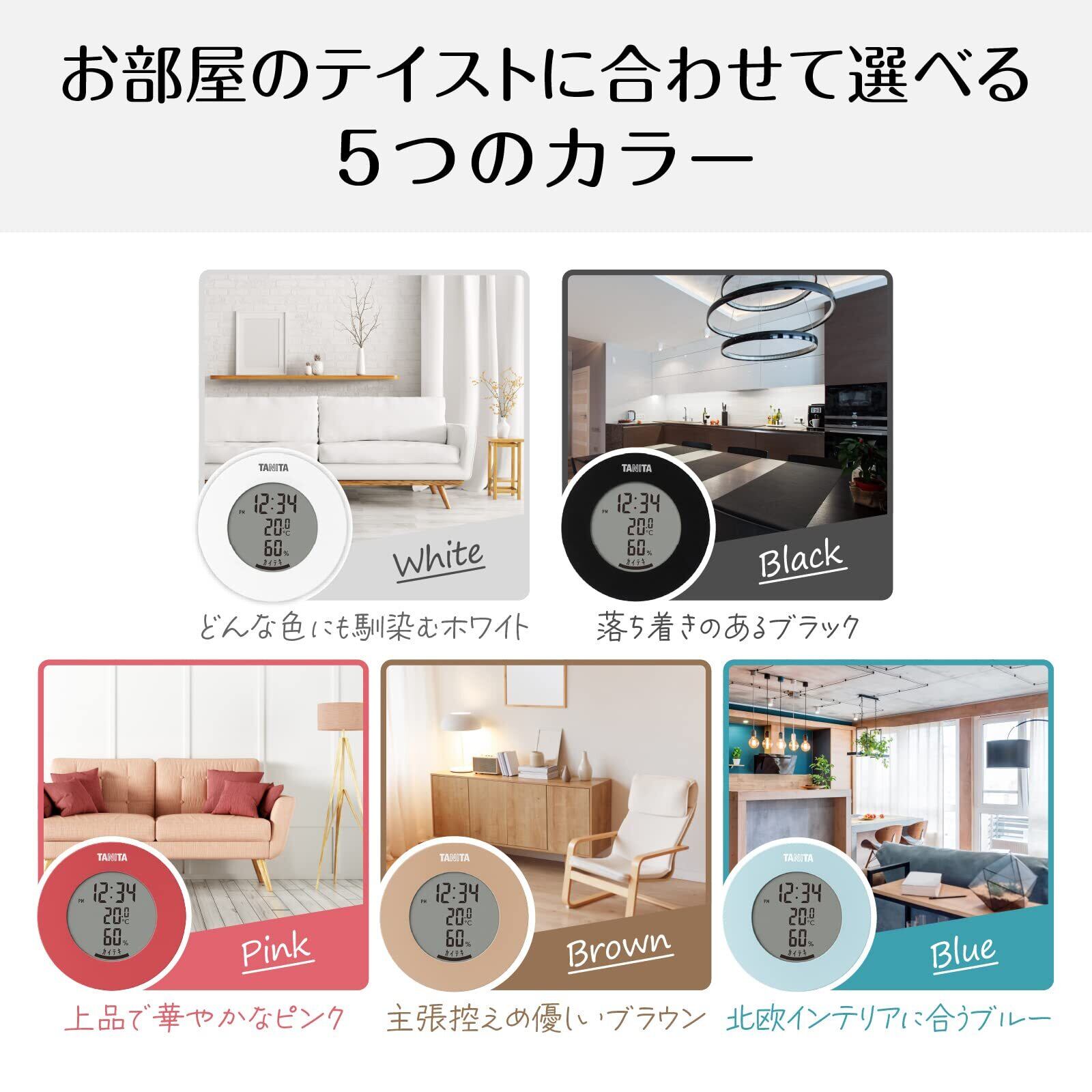 タニタ 温湿度計 時計 温度 湿度 デジタル 卓上 マグネット ライトブラウン TT-585 BR