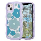 QLTYPRI iPhone 14ケース iPhone 13ケース クリア TPUカバー おしゃれ 韓国 可愛い 透明 薄型 軽量 耐衝撃 スマホケース ワイヤレス充電対応 ストラップホール付き アイフォン 14/13 ケース 6.1インチ 対応 - パープルフレーム & ブルー 花柄