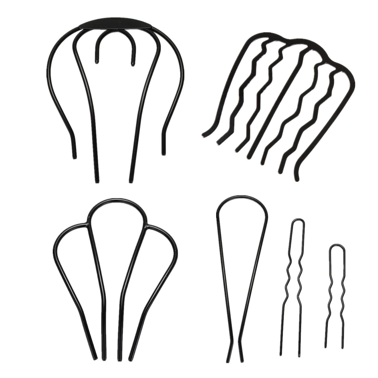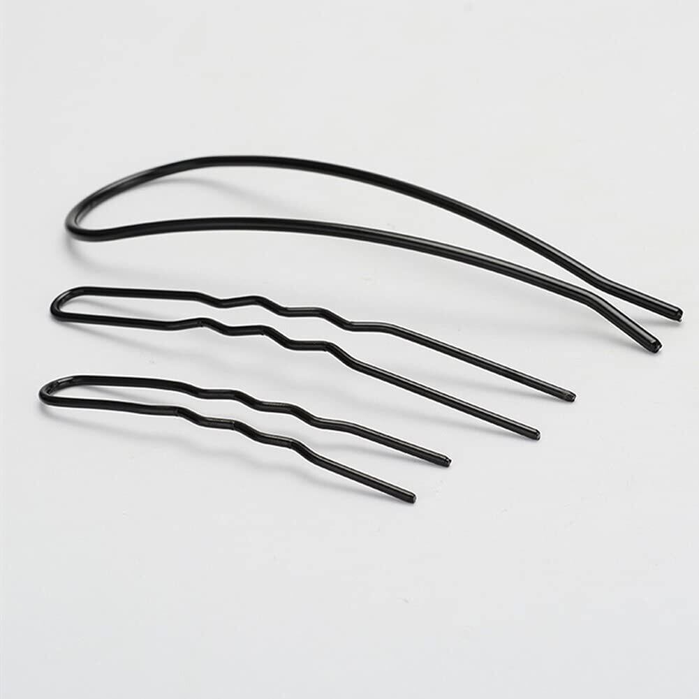 [Sevenara] 夜会巻き ヘアコーム ヘアアクセ U字 ピン 【2本セット】 時短 簡単 まとめ髪 盛り髪 お団子 髪ピン Eスティック Uスティック ヘアアクセサリー 髪飾り マットブラック | yankees