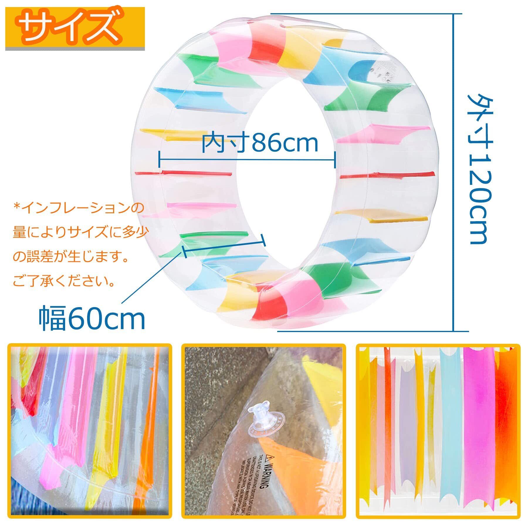 大きい浮き輪! サイズは外径120×幅60×内径86cmに変更されました。従来のサイズより、子供も中に乗って回転しながら、行けます。(ご注意:不十分なインフレータブルでサイズ多さに影響します。)