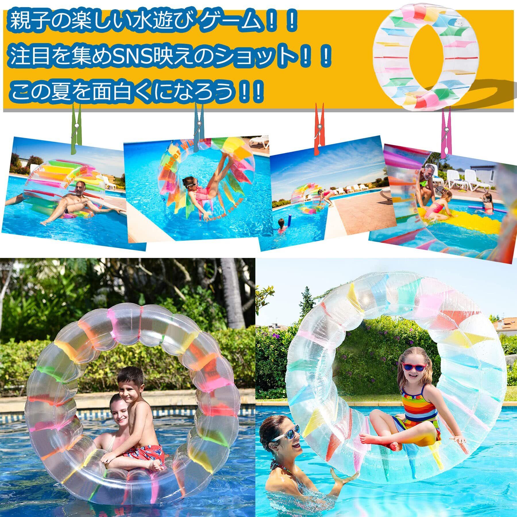 水の上をくるくる回転する面白いフロート浮き輪です。新しいプールや海の水遊びの方法を提供します。大きく透明な浮き輪ホイールが夏の屋外レジャーによく合い、クリア&レインボーのカラーが、とても涼しげで楽しそうです!ウォーターホイールに乗り込んで、ハムスターのように前に進んでいく子供たちは、キャーキャーと大はしゃぎで、最高に盛り上がりさせてみましょう!!