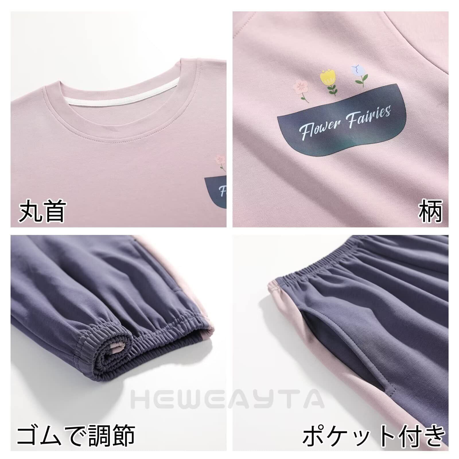 [HEWEAYTA] パジャマ レディース ルームウエア 夏 七分丈 半袖 薄手 丸首 上下セット 快適 ゆったり 肌に優しい