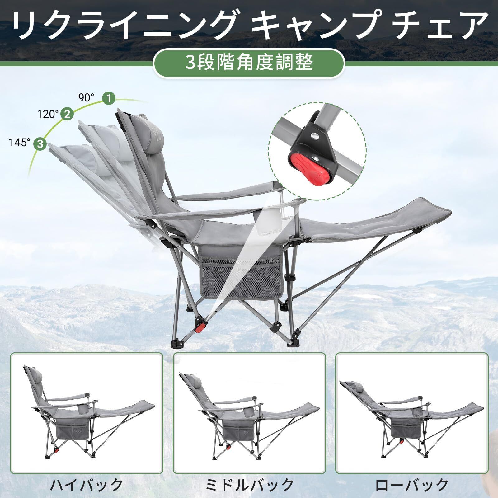 WEJOY アウトドア チェア リクライニング 折りたたみ キャンプ チェア コンパクト 携帯便利 サマーベッド機能&カップホルダー付き 車中泊・運動会・花見・キャンプに最適