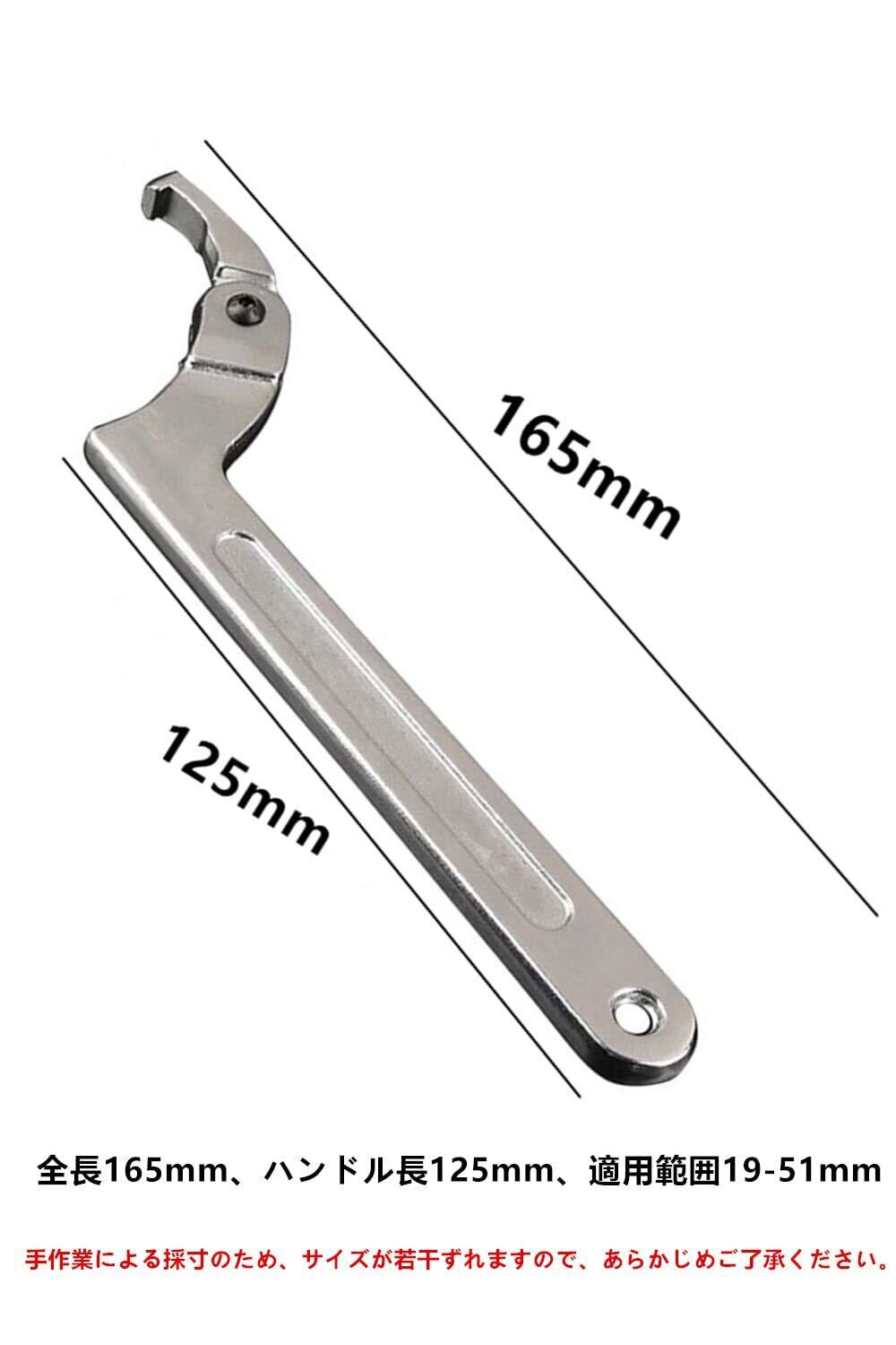 LIKENNY フックレンチ 車高調レンチ 多機能調節可能 19-51mm スクエアヘッド ロックナットレンチ 修理ツール 月形レンチ 引っ掛けスパナ(シルバー)