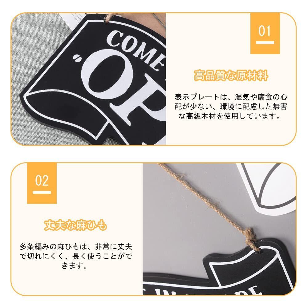 オープン クローズ open close プレート 木製 両面看板ボード サインプレート インテリア ひも付き リバーシブル オシャレ お店/カフェ/レストラン/雑貨屋用 (ブラック)
