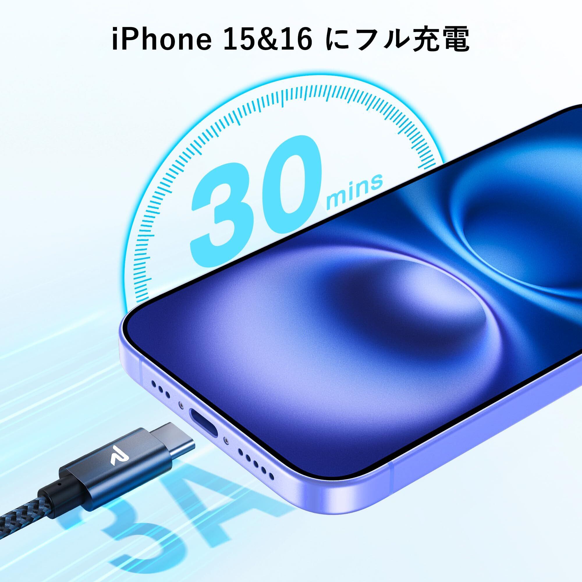 【幅広い互換性】このUSBC USBC ケーブルは、iPhone15/16/16e、iPhone15/16 Plus、iPhone15/16 Pro、iPhone15/16 Pro Max、Nintendo Switch、Google Pixel 2 / 3 / 4 /XL / 2XL、Samsung Galaxy S10 / S9 / S8 / Note 10 / Note 9 / Note 8、GoPro Hero 7 / 6 / 5など、さまざまなUSB-Cデバイスに完璧に適合します。️️iPhone15/16シリーズ専用で、他のiPhone機種には対応していません。