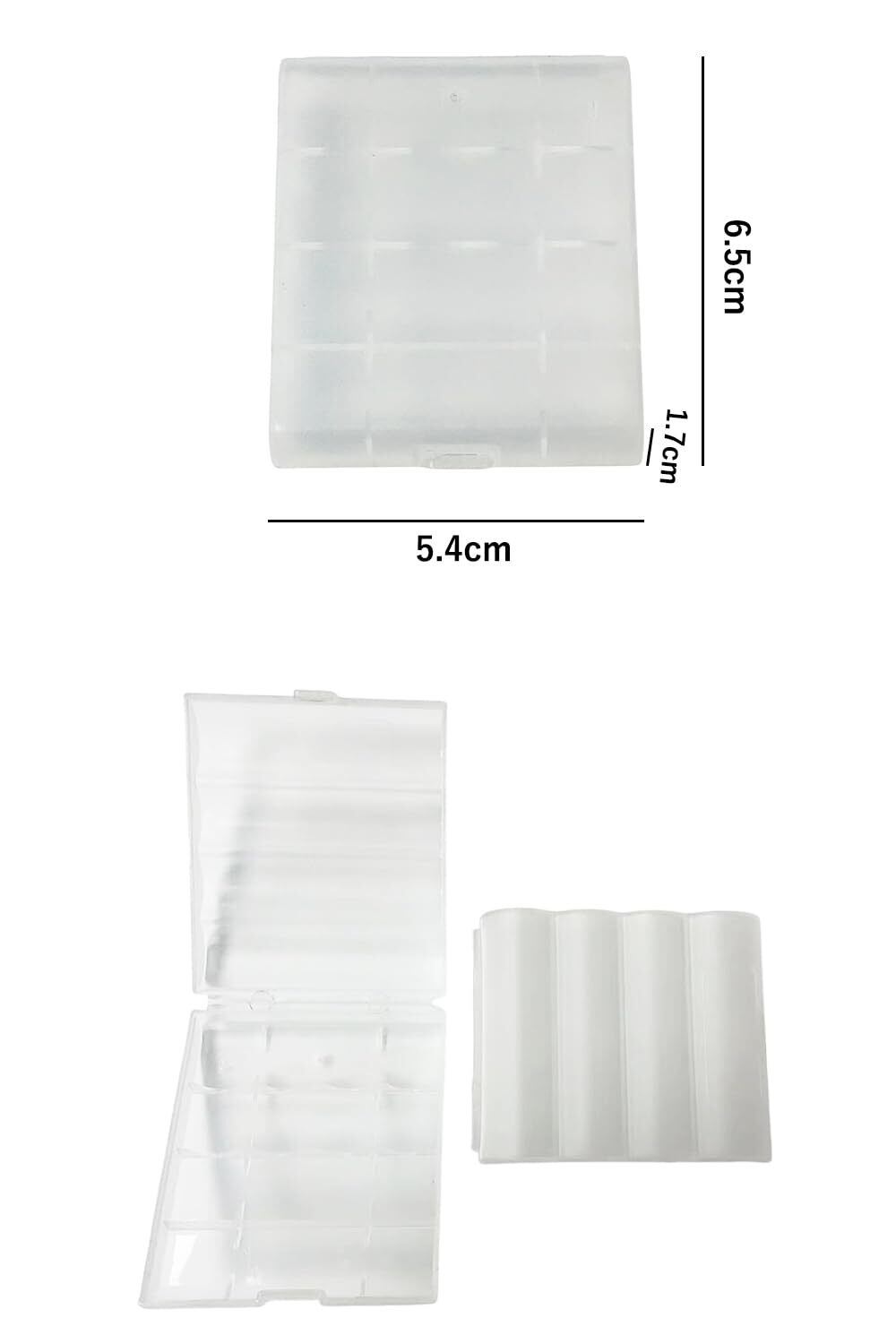 プラスチック製電池収納ケース6個セット、サイズ:65×54×17mm、カラー:クリア。