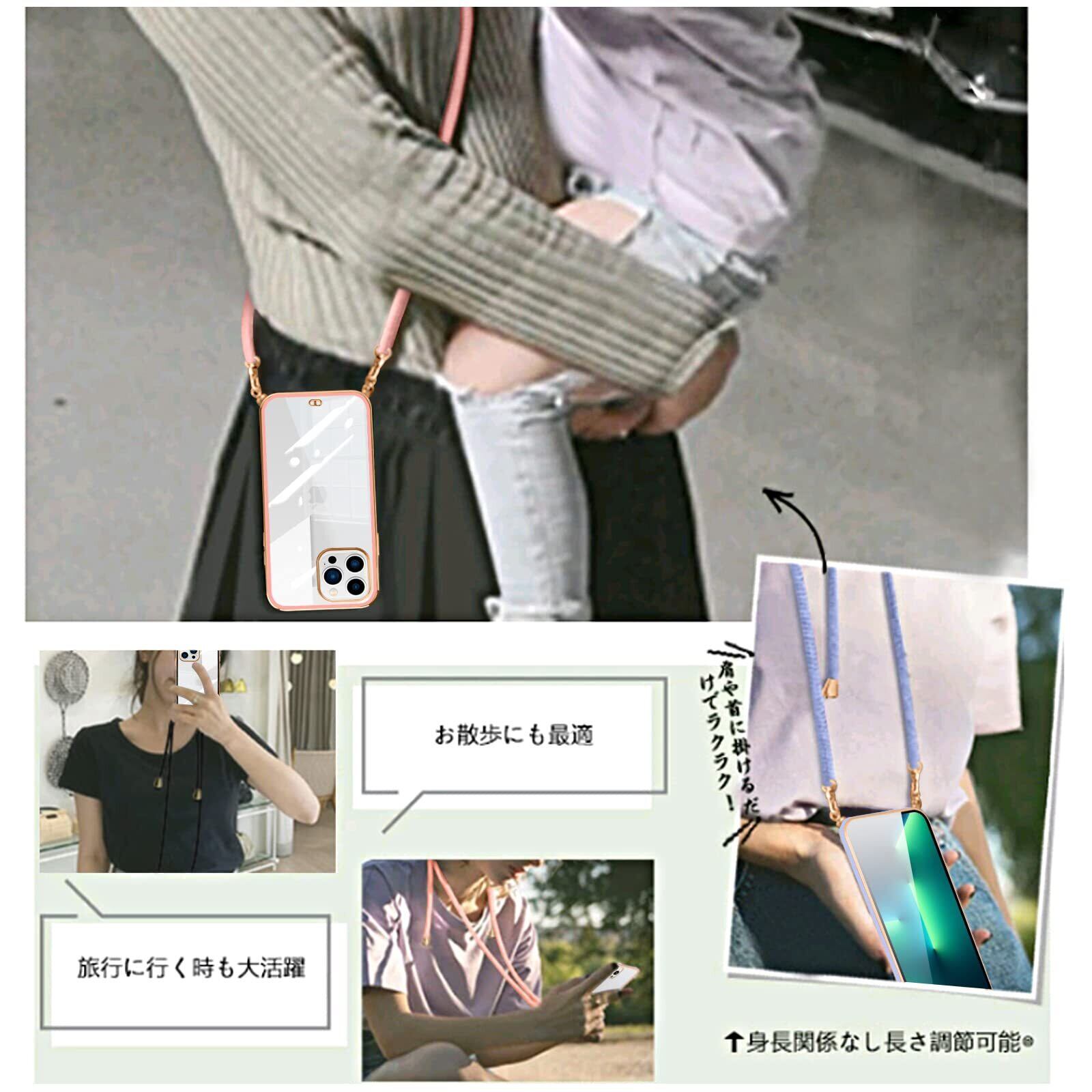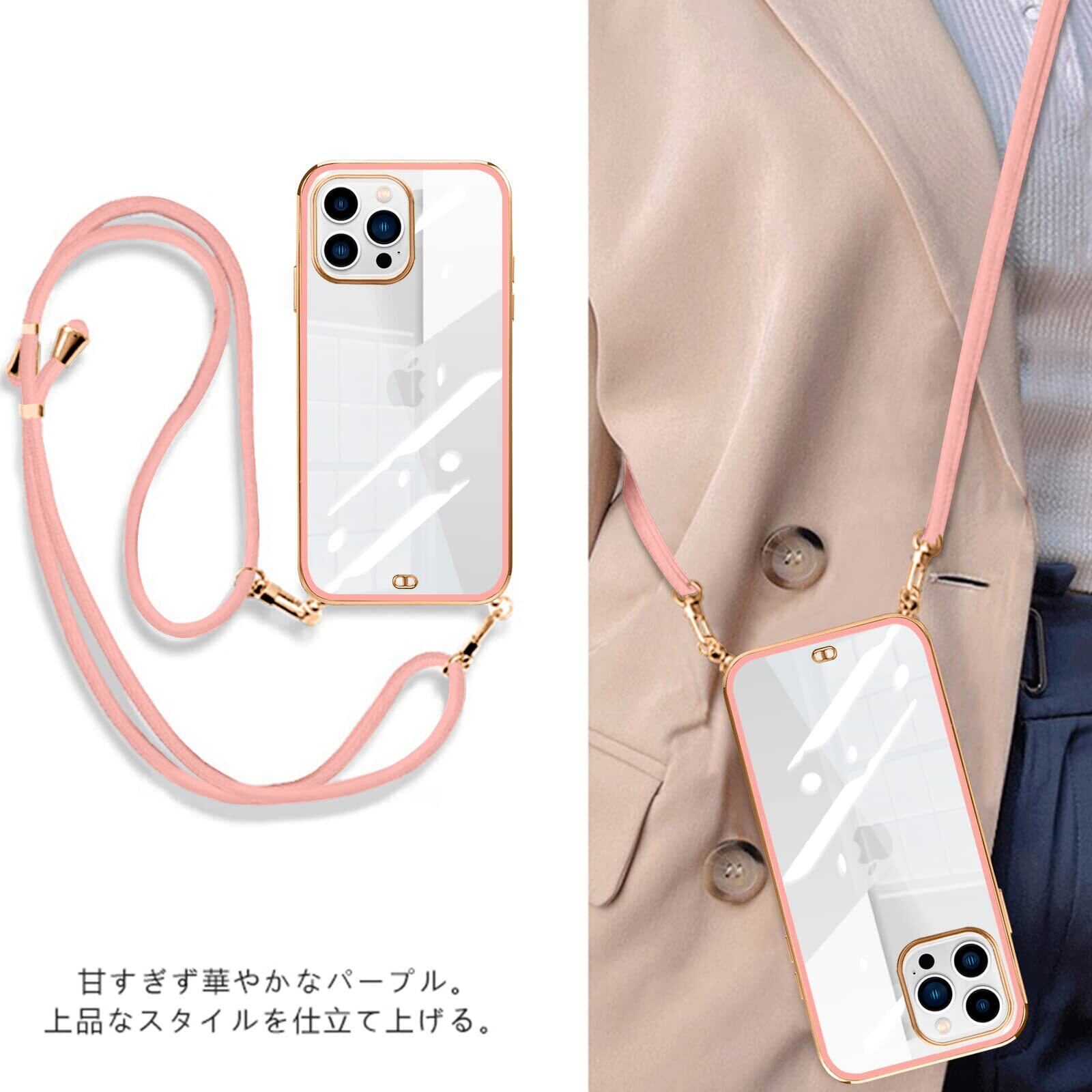 iPhone13 Pro Max ケース ショルダー クリア いphone13 Pro max スマホケース カバー 肩掛け 首掛け 斜めかけケース 可愛い かわいい 韓国 透明 TPU 薄型 耐衝撃 シリコン アイフォン13pro max(桜 ピンク)