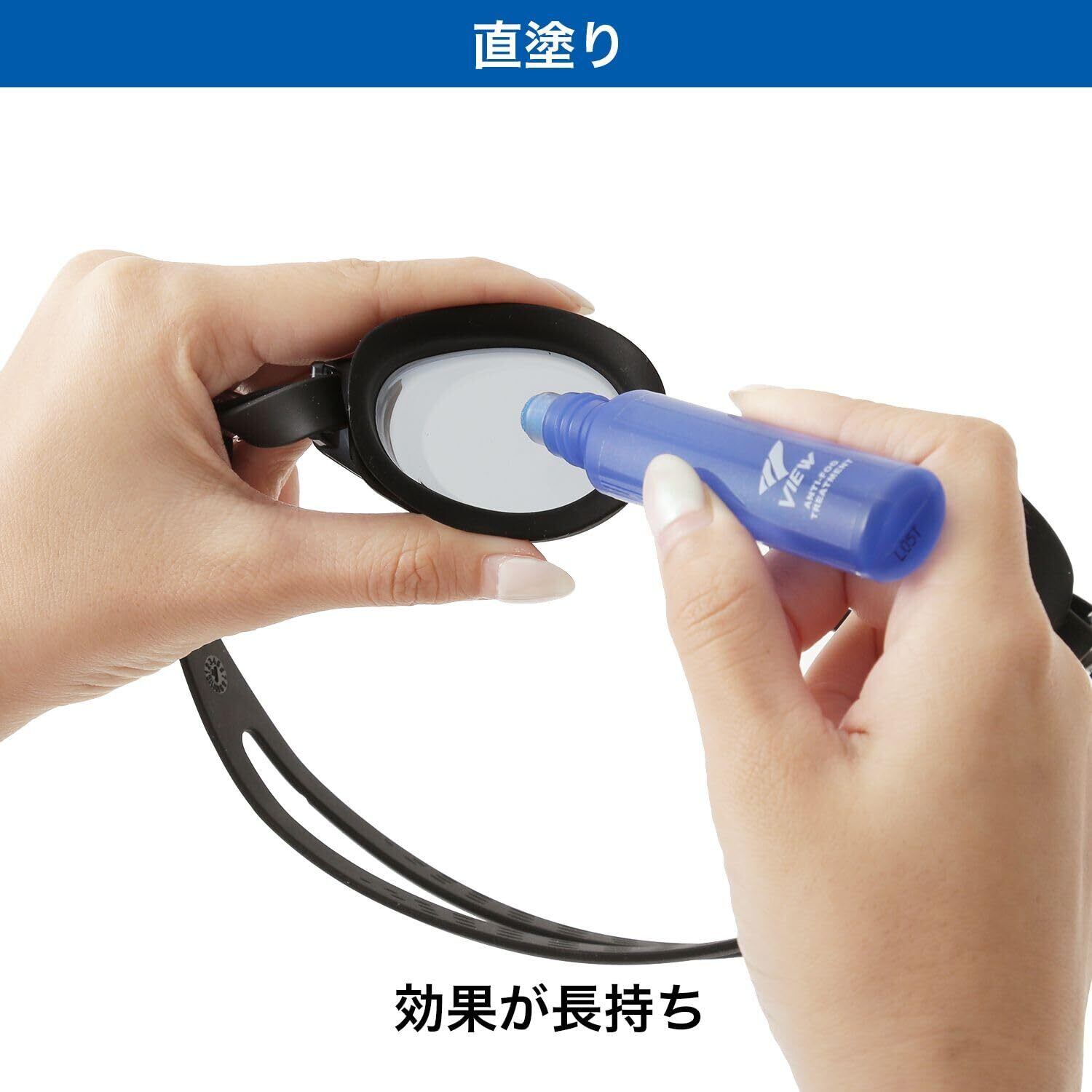 【使い方】レンズ内側を水で濡らした後、くもり止め液を1,2滴垂らして塗り、水で軽くすすぐ