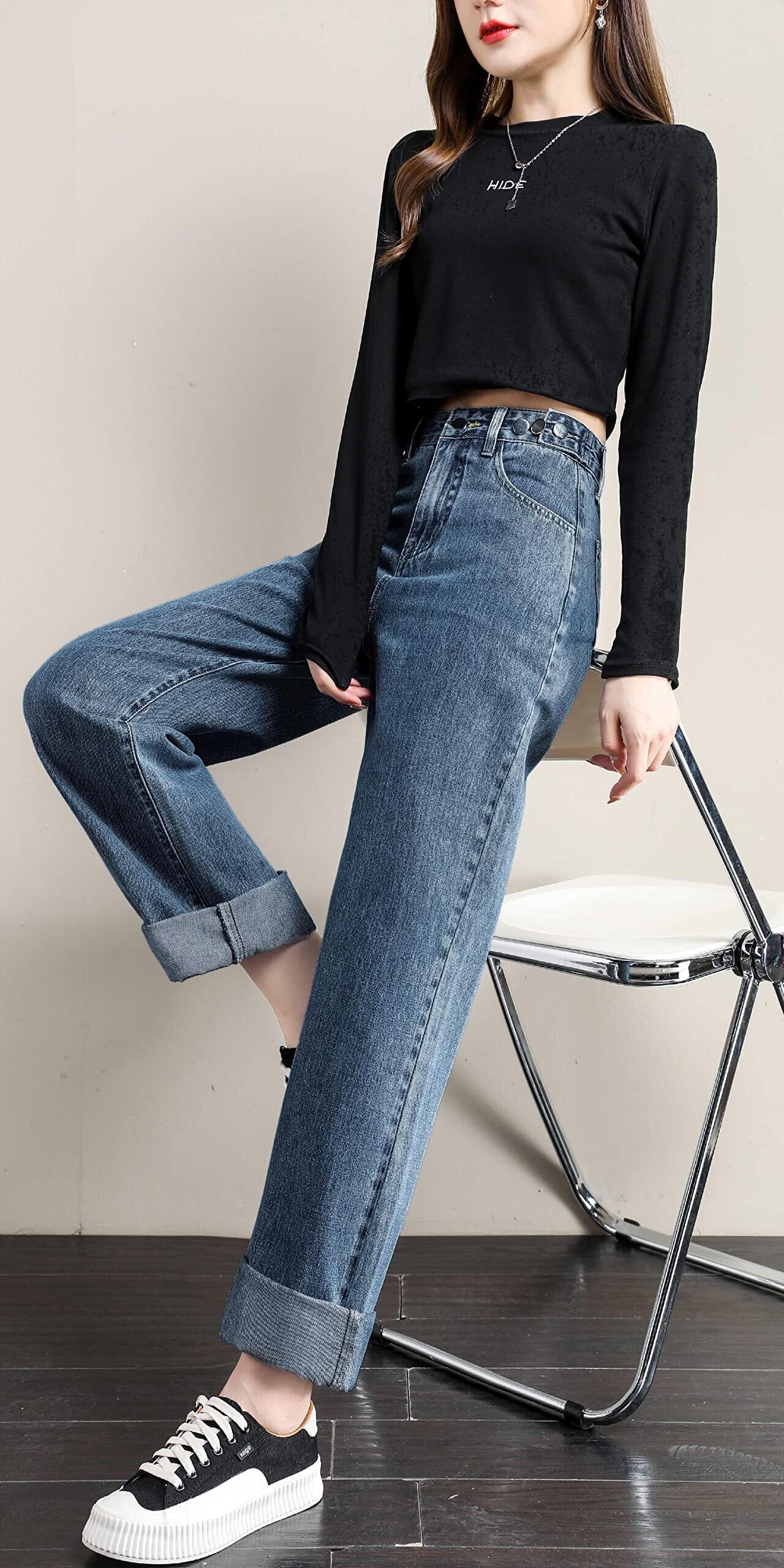 レディース ワイド デニム パンツ カジュアル 9分丈/ロング ハイウエスト ストレート ジーンズ パンツ ゆったり 美脚 パンツ