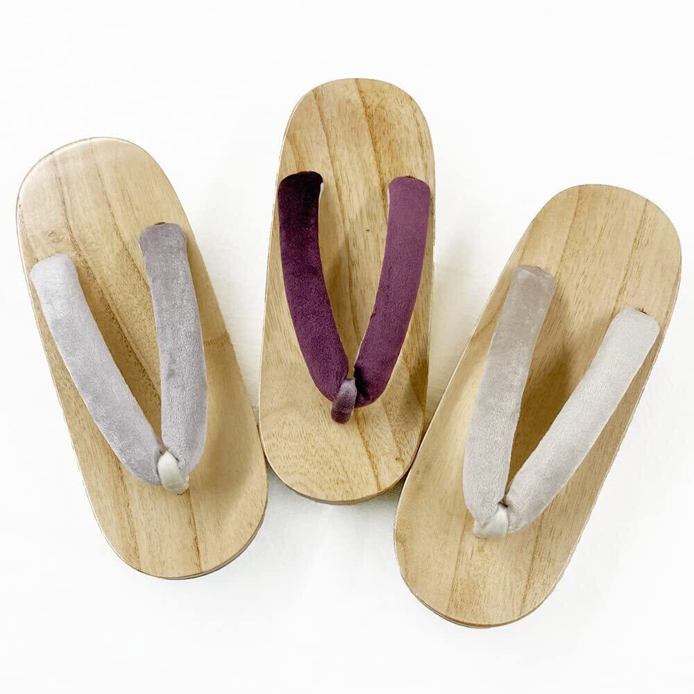 【ここがポイント!】 ●鼻緒の表はもちろん、鼻緒もベロア、鼻緒裏は起毛素材で痛くなりにくい!●下駄の底はゴムなので滑りにくく、音も鳴りにくい!●白木の台がなだらかで肌当たり優しい!●軽くて足取りも軽やかに